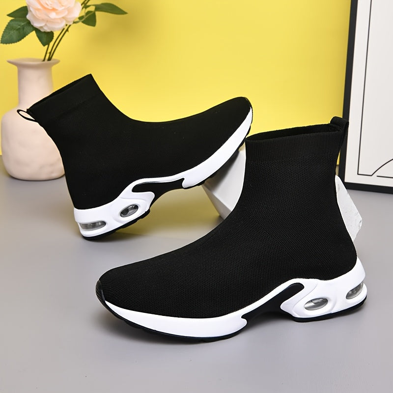 Women's High-Top Knit Sock Sneakers Breathable Air Cushion Casual Black White