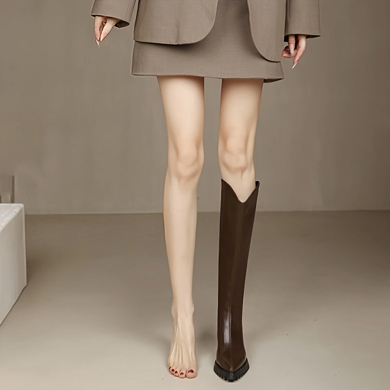 Women's Leather Ankle Boots Autumn Winter Pointed Toe Block Heels