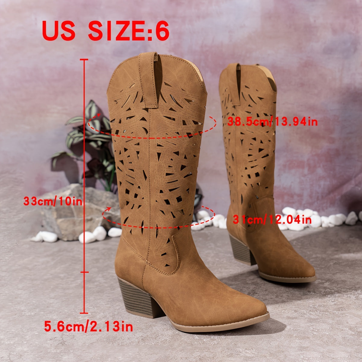 Women's Leather Slip-On Western Boots with Breathable Design for Summer and Travel