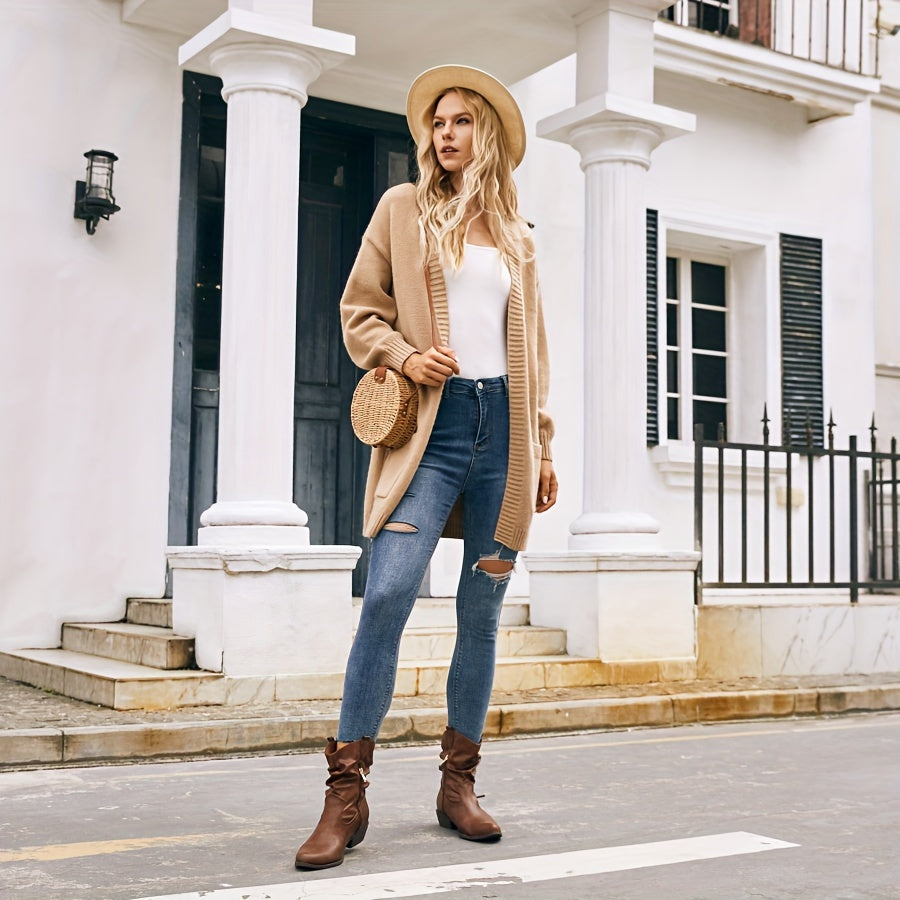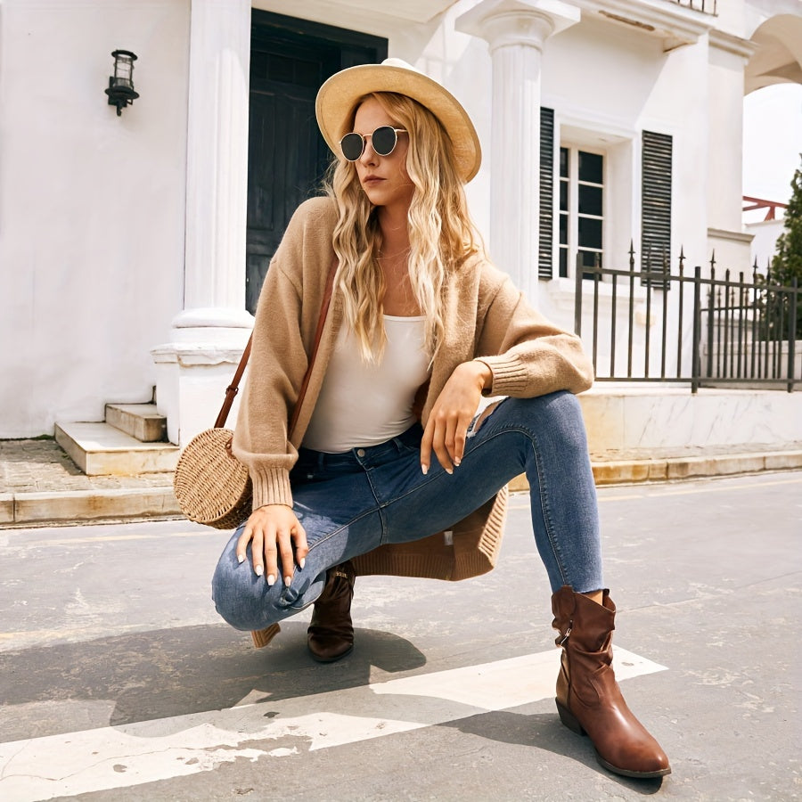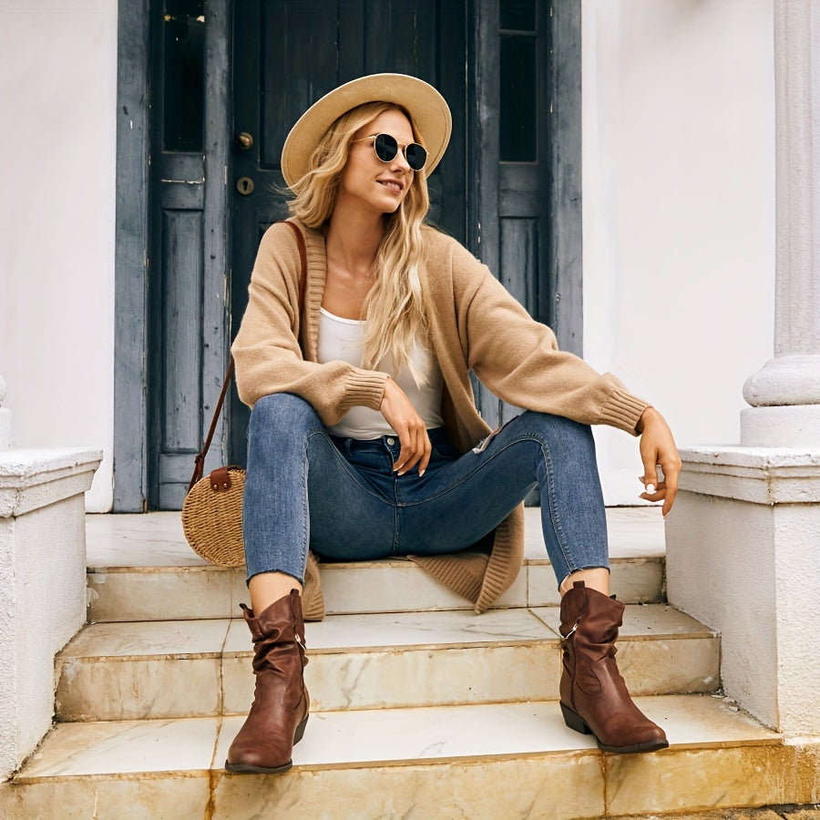 Women's Leather Western Cowboy Boots Pointed Toe Low Heel Side Zipper