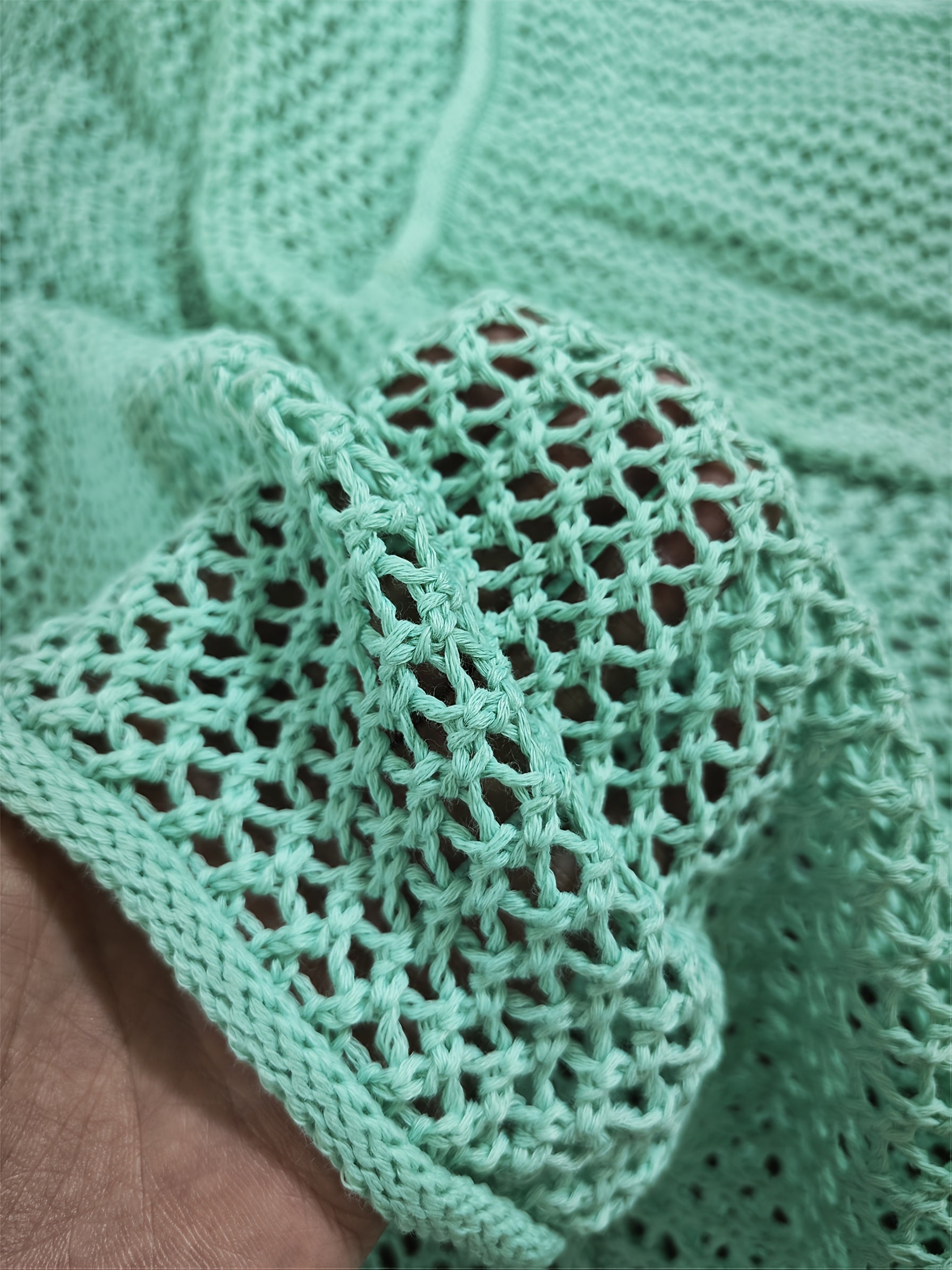 Women's Light Blue Crochet Hooded Beach Cover-Up Long Sleeve Plus Size