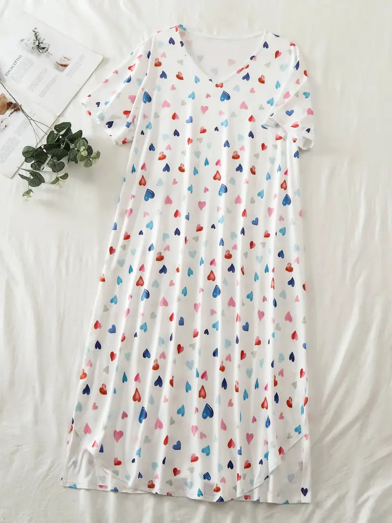Women's Long Heart Print Cotton Casual Maxi Sleep Dress