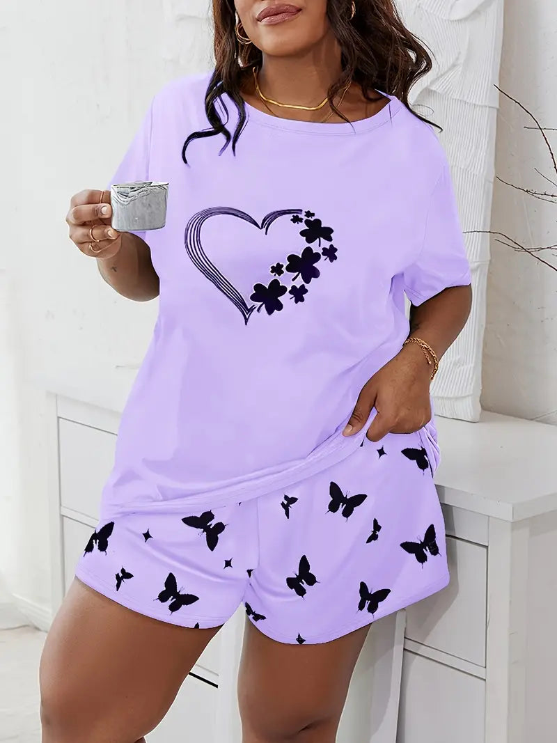 Women's Loungewear Set Short Sleeve Printed T-Shirt Pants Comfortable