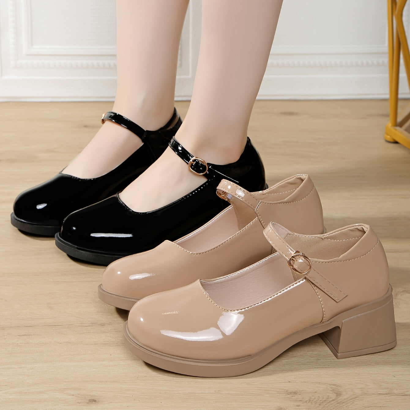 Women’s Low-Cut Chunky-Heeled Mary Jane Loafers for Petite Feet