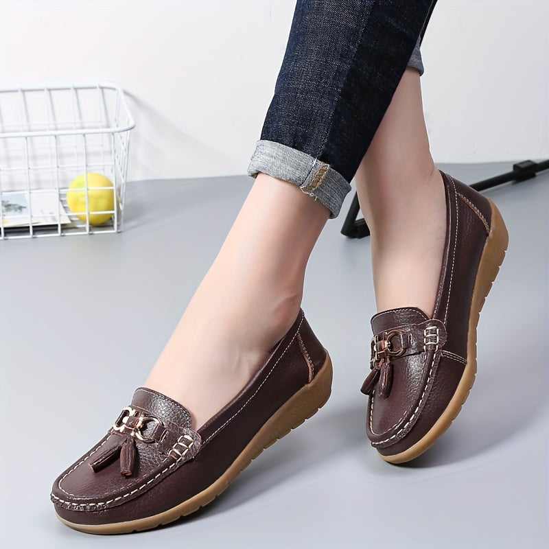 Women's Low Wedge Bowknot Loafers Solid Color Round Toe Slip-On Shoes
