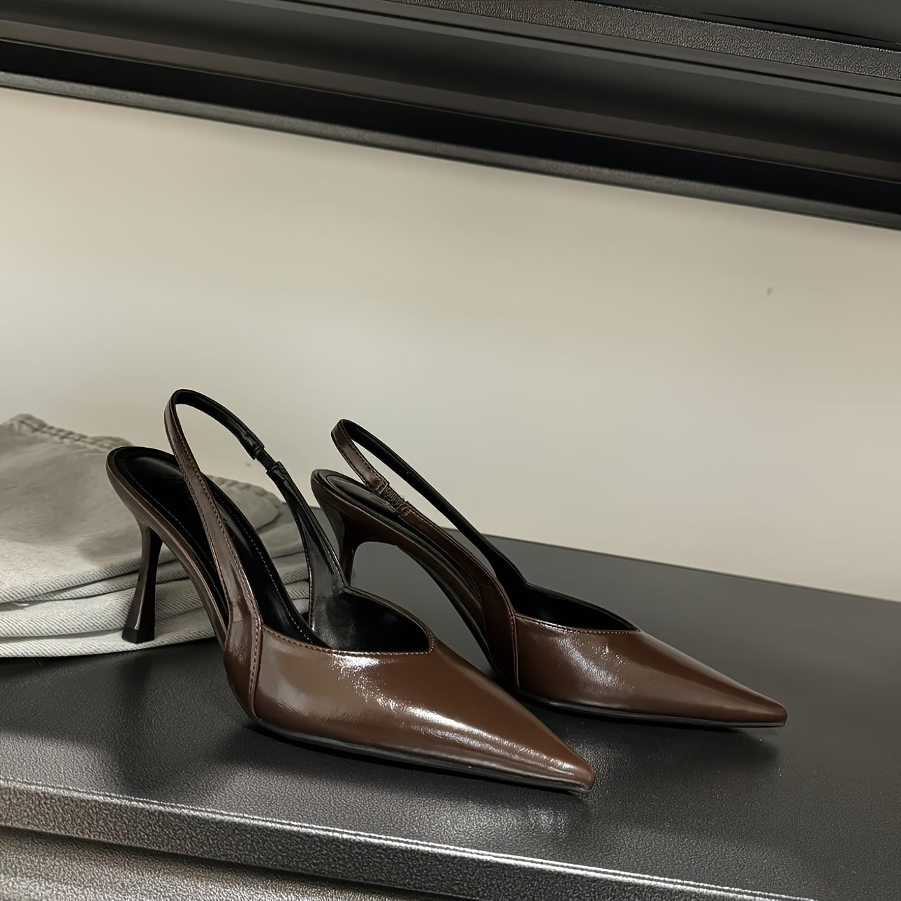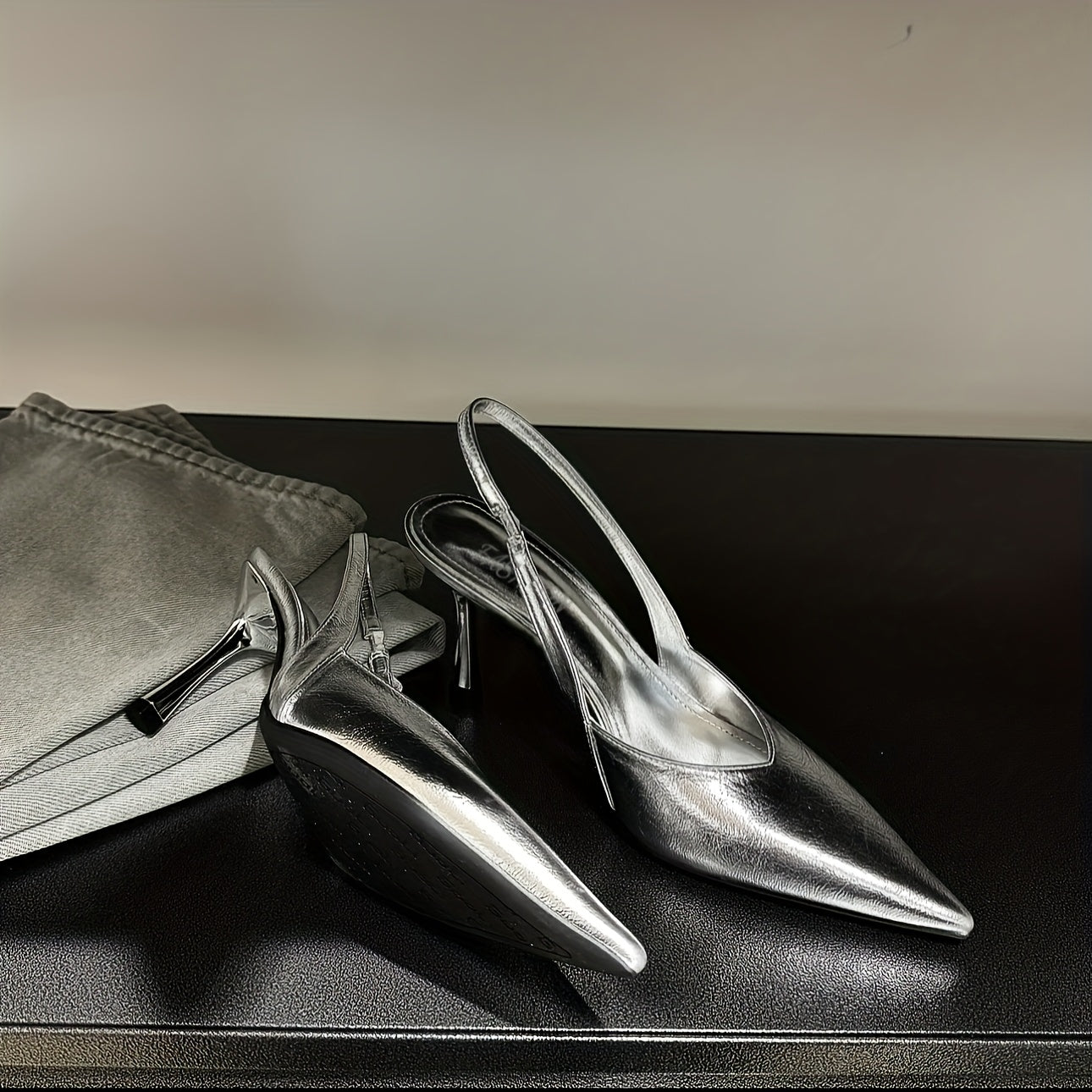 Women’s Metallic Silver Black Brown Pointed Toe Stiletto Heels with Ankle Strap