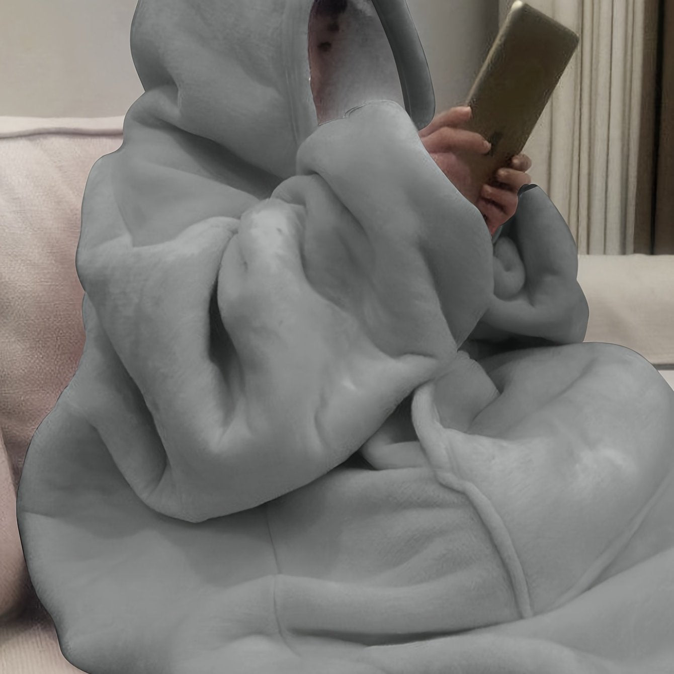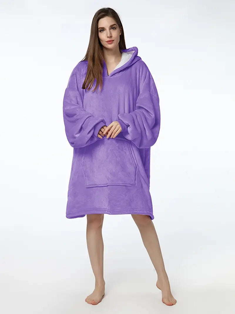Women's Navy Blue Fleece Hooded Lounge Robe Warm Long Sleepwear