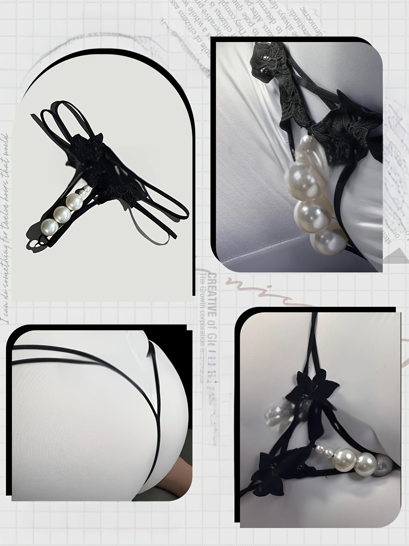 Women's Pearl Massage Panties Beaded Lace Floral G-String Thong