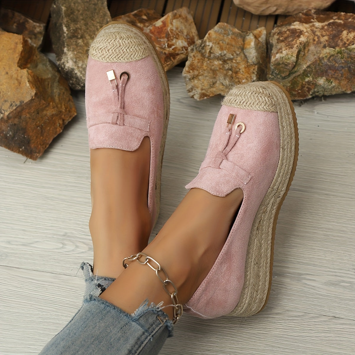 Women's Pink Platform Loafers with Jute Wedge Sole and Metallic Accents