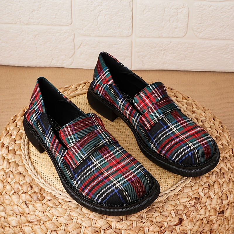 Women's Plaid Loafers Slip-On Dress Shoes Non-Slip Rubber Sole