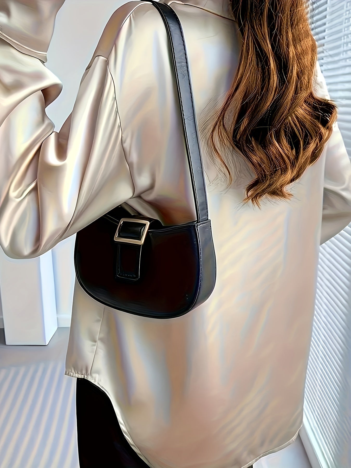 Plus Size Black Button-Up Blouse with Collar and Tailored Fit for All Seasons