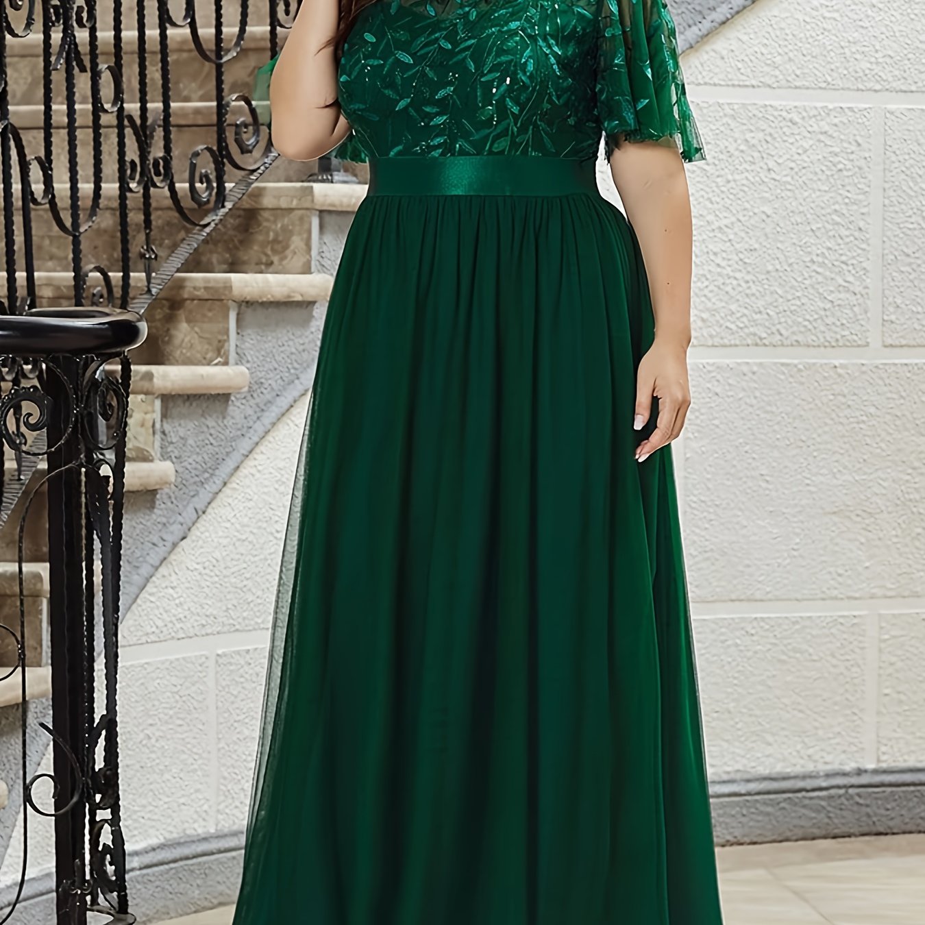 Women's Plus Size Emerald Green Lace-Trimmed Midi Dress with Belt