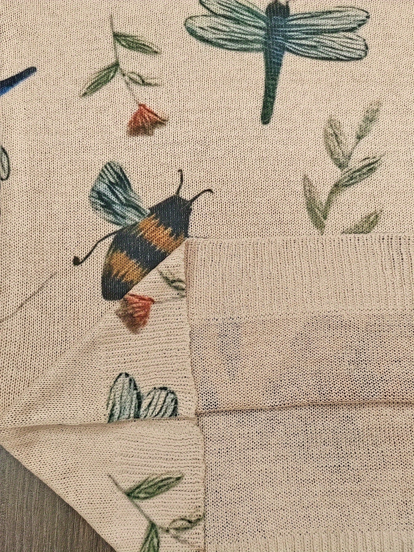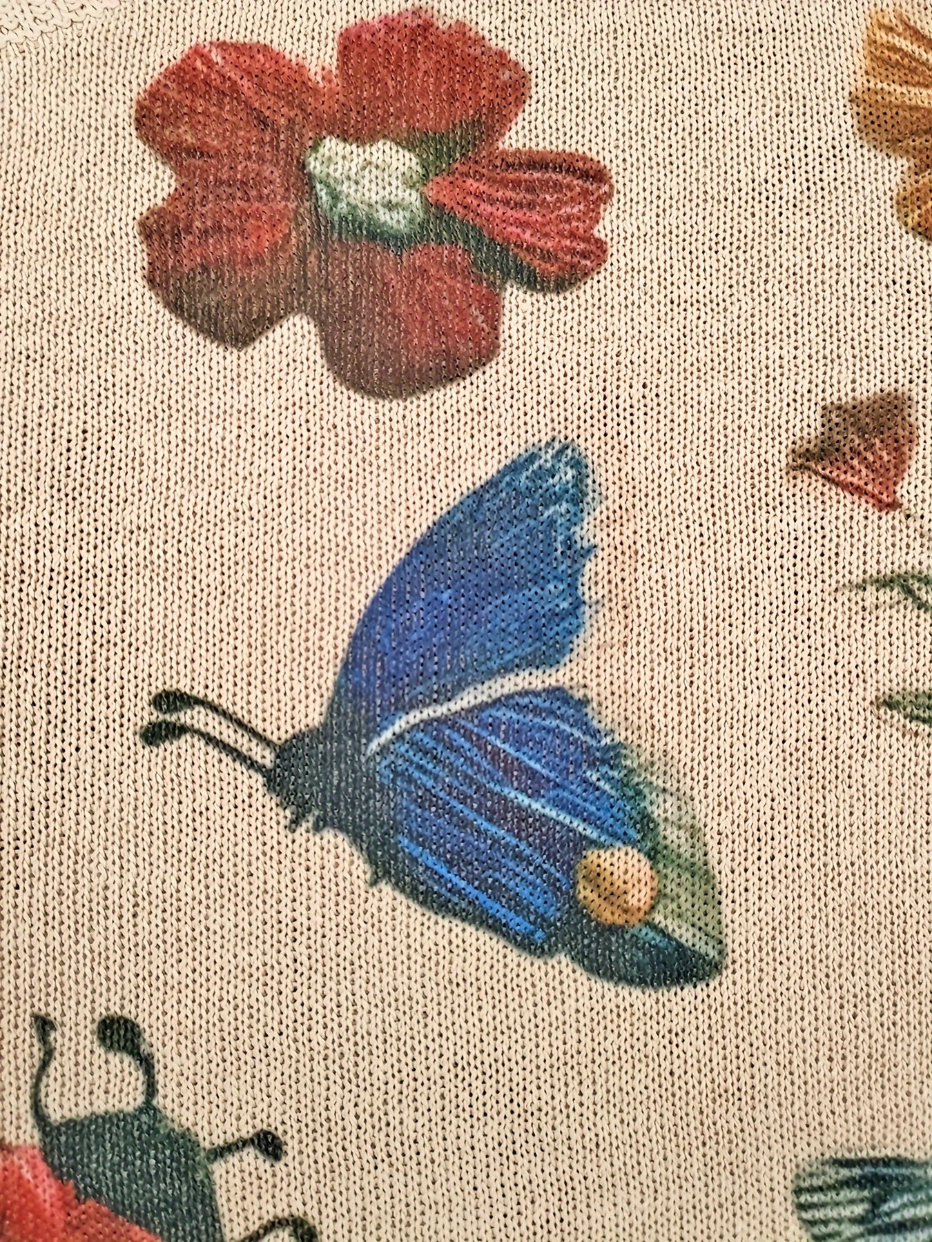 Women's Plus Size Floral Butterfly Pattern Knitted Pullover Crew Neck Long Sleeve Top