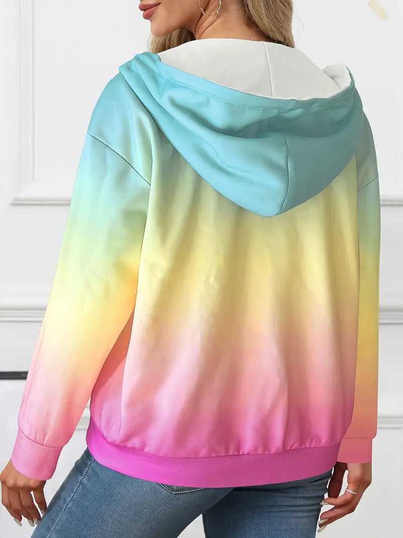 Women's Plus Size Gradient Ombre Hoodie with Zip Long Sleeve Knit