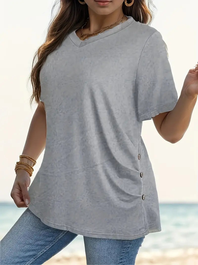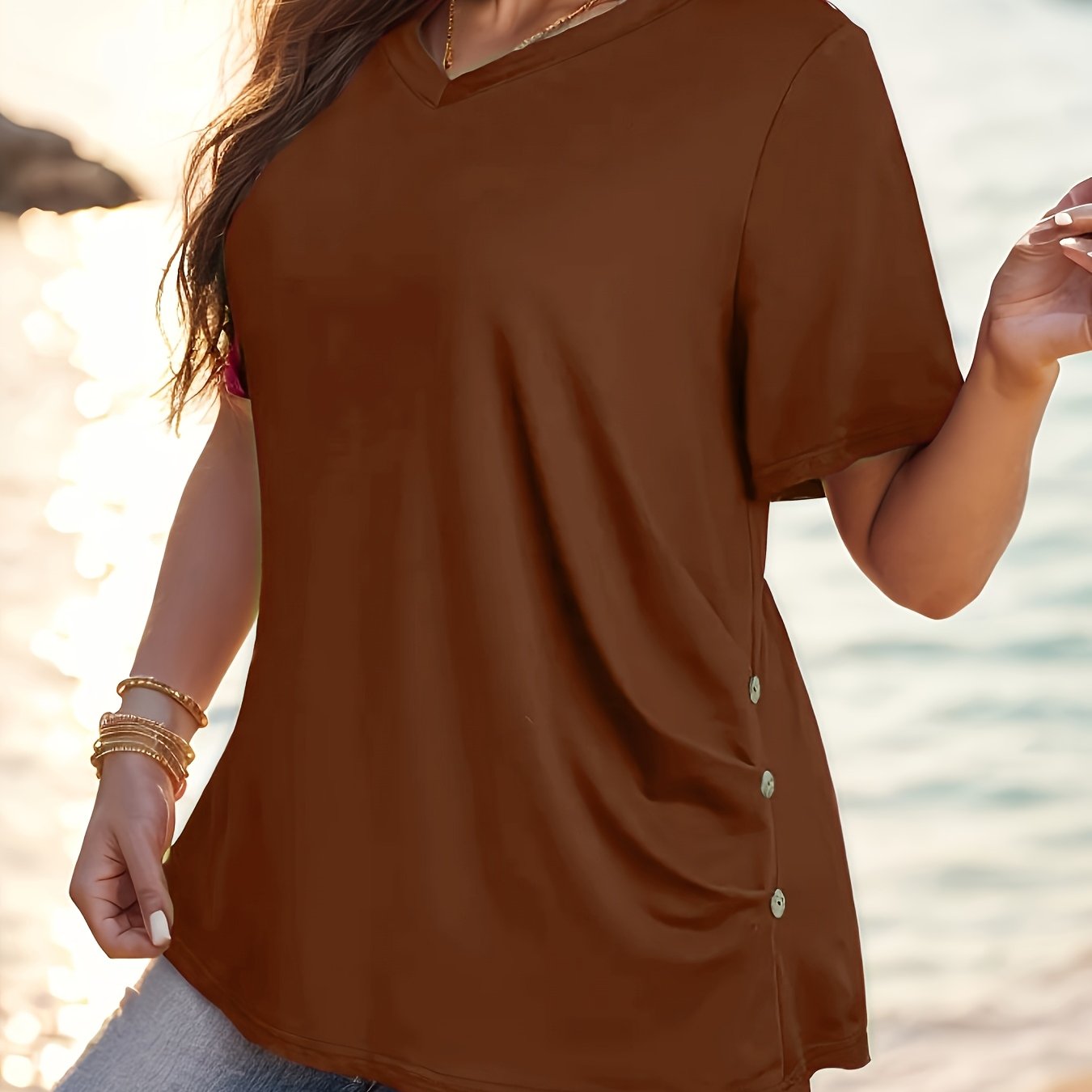 Women's Plus Size Green V-Neck Short Sleeve Casual T-Shirt