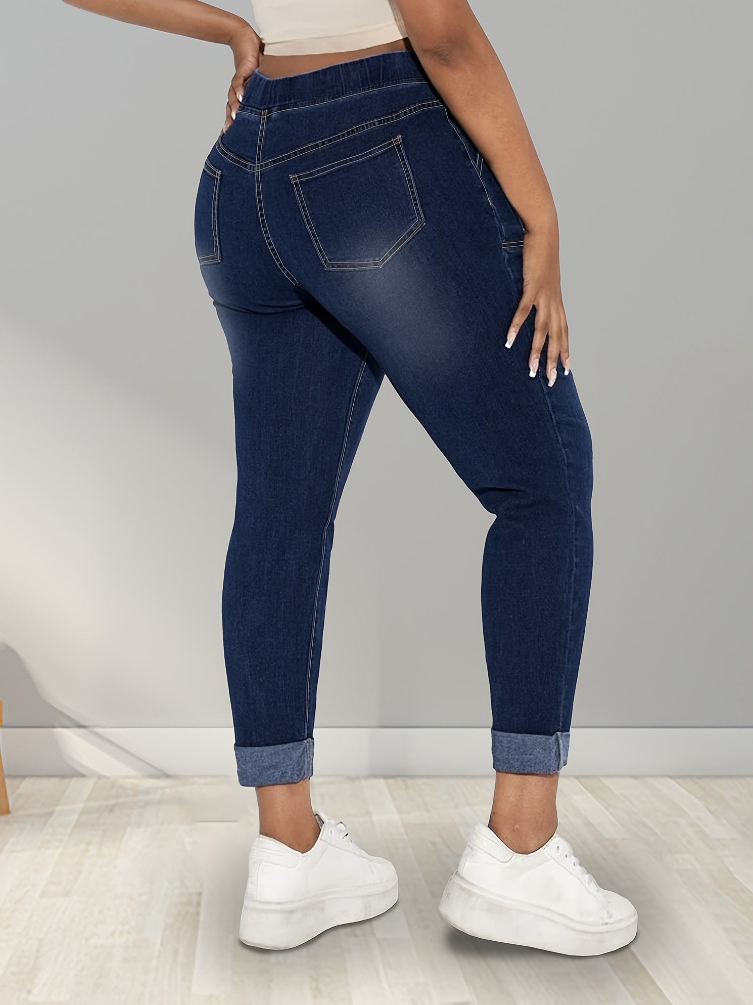 Women's Plus Size High Stretch Skinny Jeans with Roll-Up Hem and Pockets