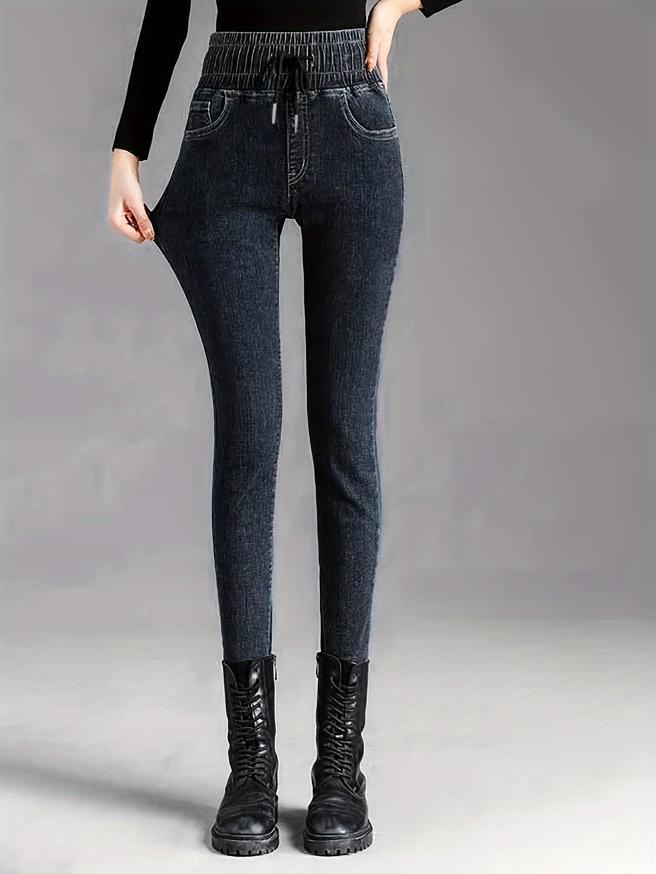 Women's Plus Size High-Waist Stretch Denim Jeans Dark Blue Slim Fit Casual All-Season
