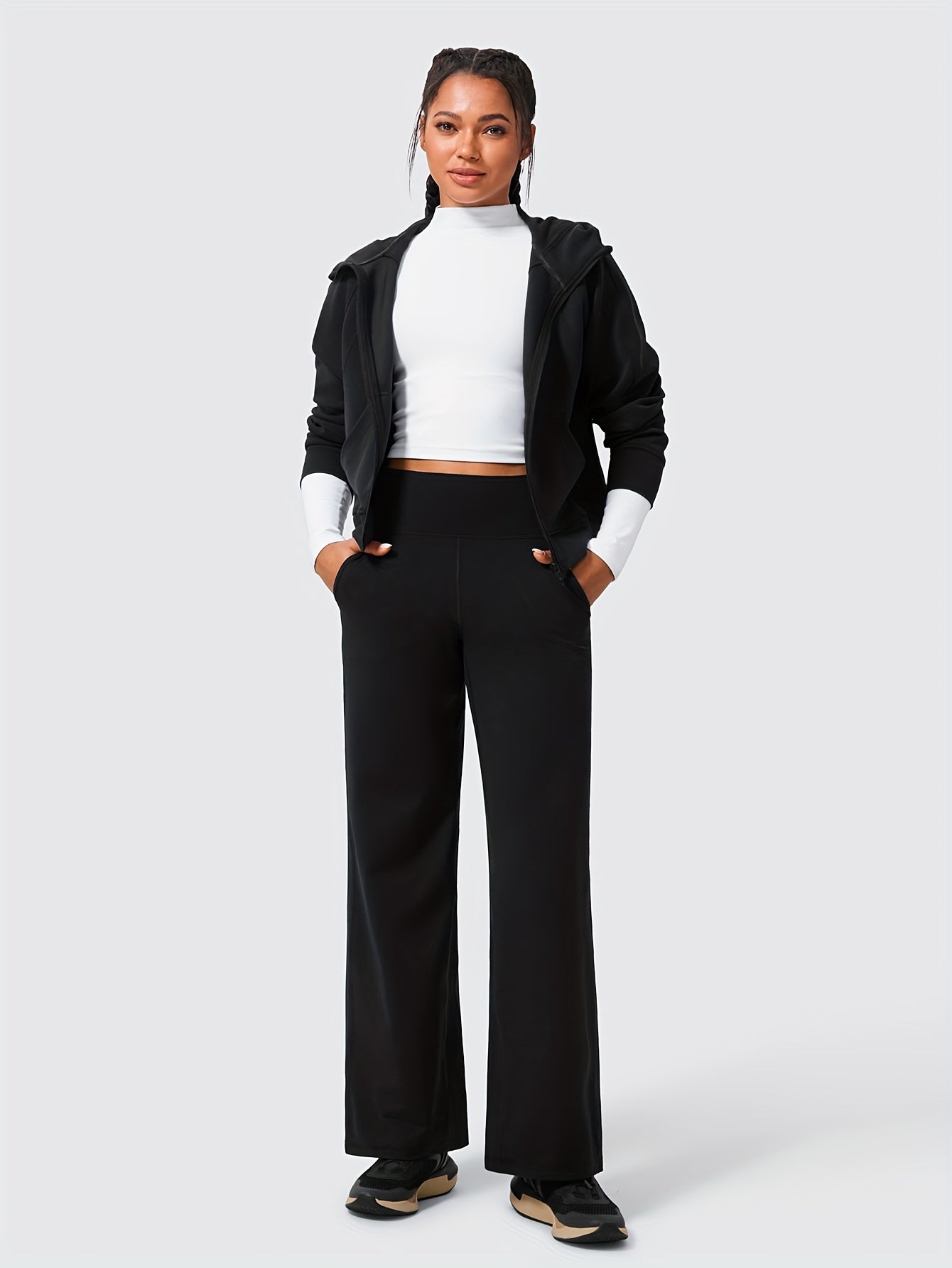 Women's Plus Size High-Waist Stretchy Wide-Leg Joggers with Pockets Gray