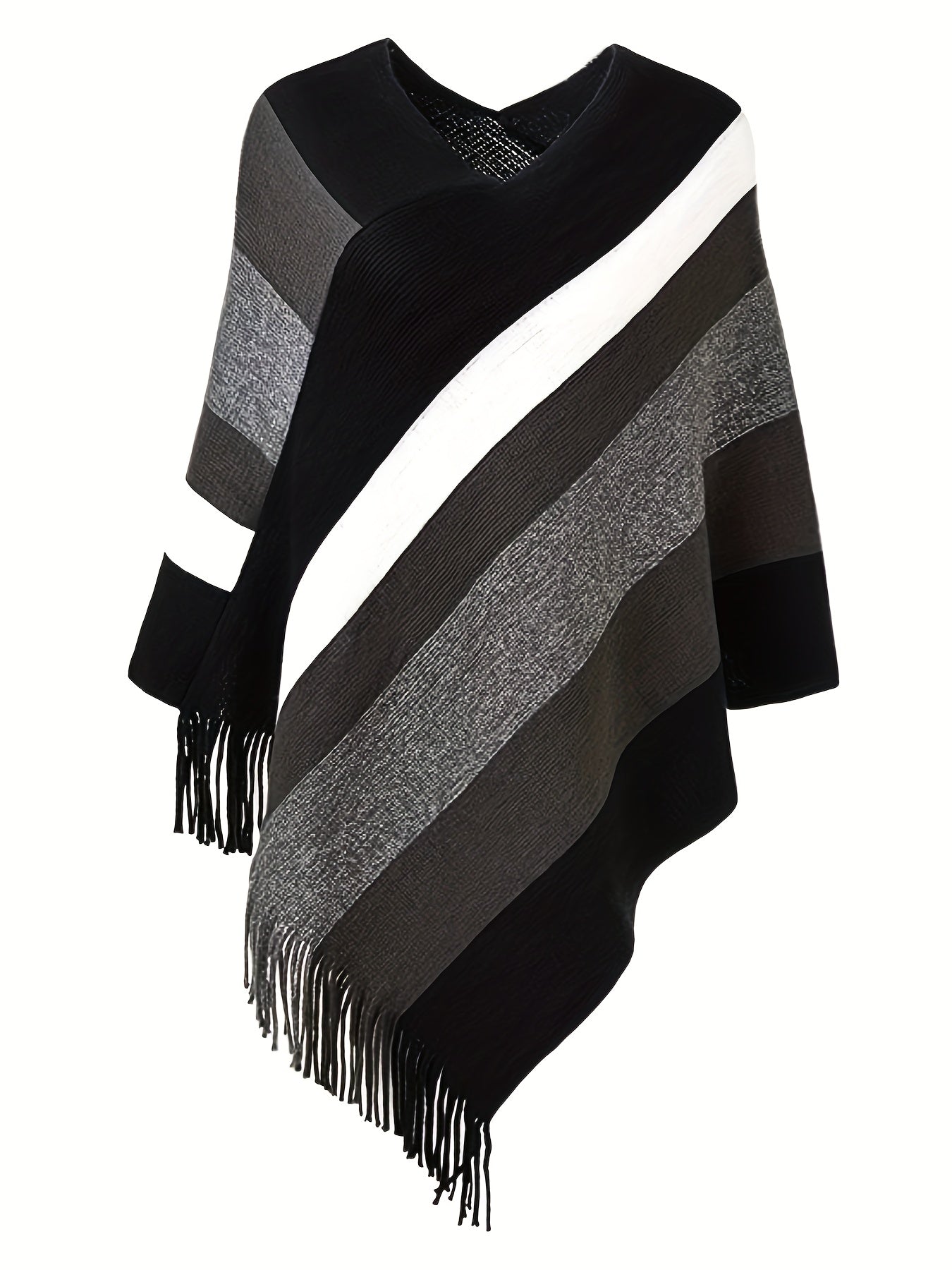 Women's Plus Size V-Neck Striped Knit Pullover Oversized Sweater Warm Wool Blend