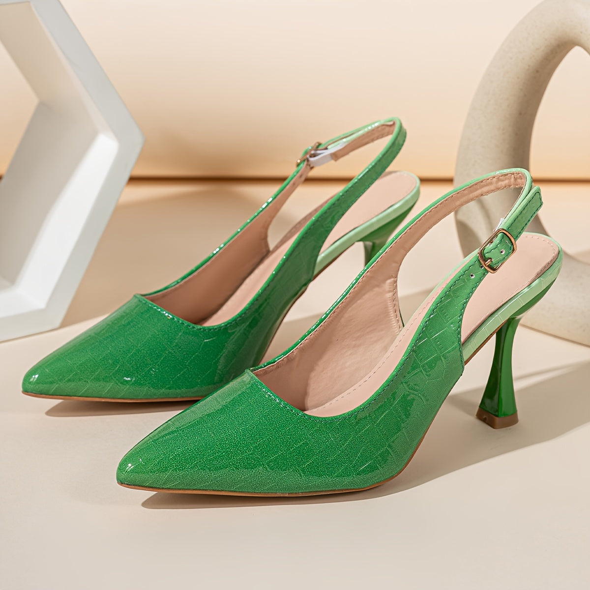 Women's Pointed Toe Slingback Pumps Gradient High Heels Croc-Embossed