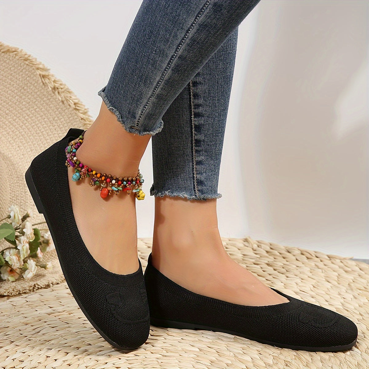 Women's Red Slip-On Knit Shoes Square Toe Breathable Casual Footwear
