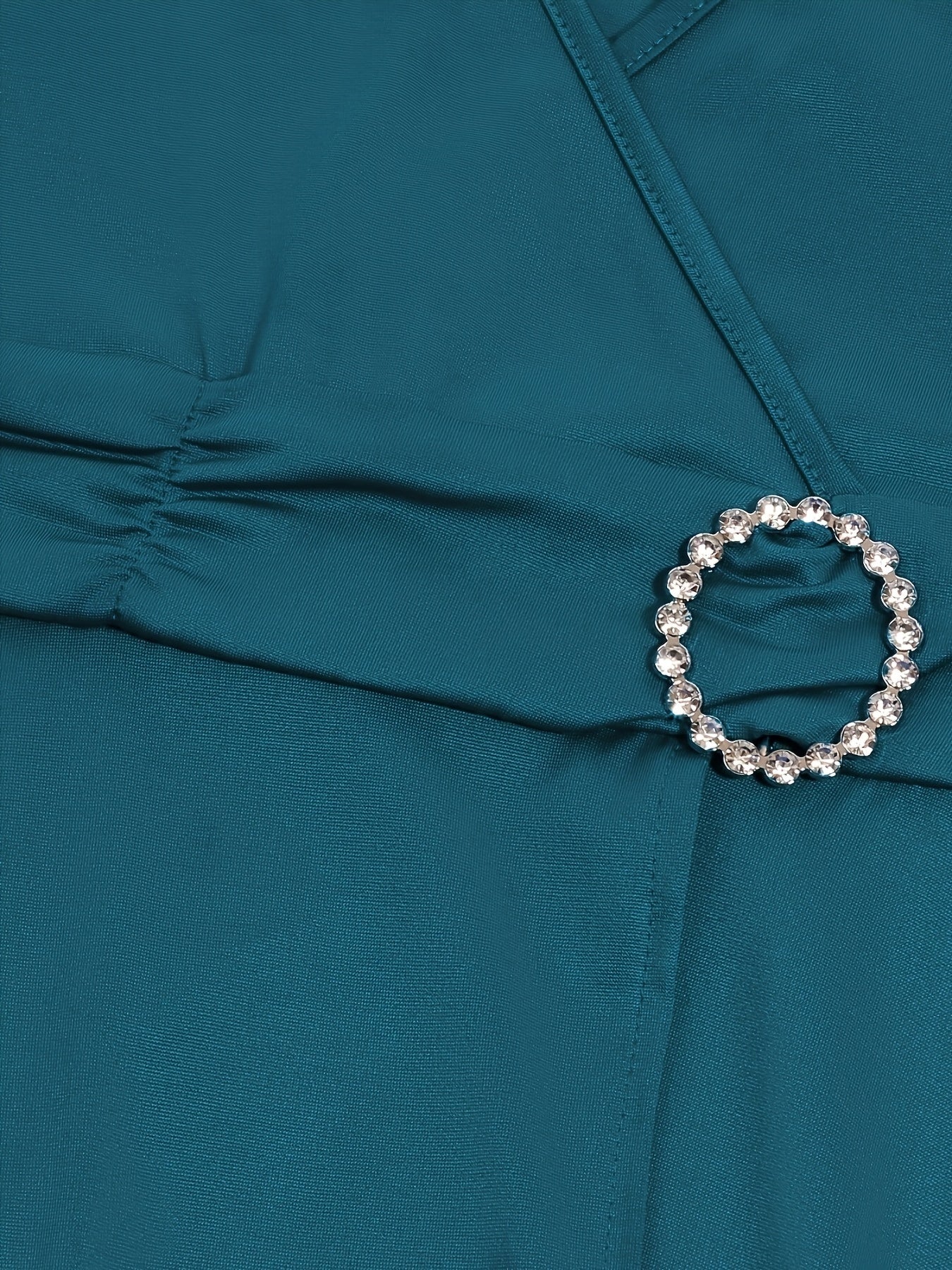 Women's Rhinestone V-Neck Dress with Asymmetrical Hem and Tie Waist