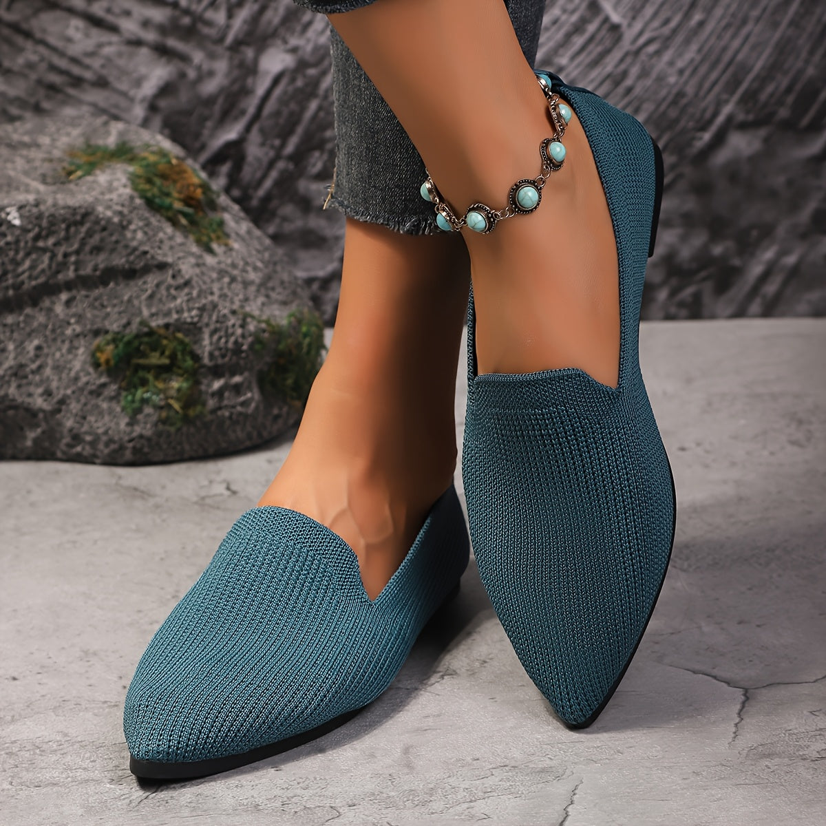Women’s Slip-On Knit Pointed Toe Shoes Breathable Fabric All-Season Comfort