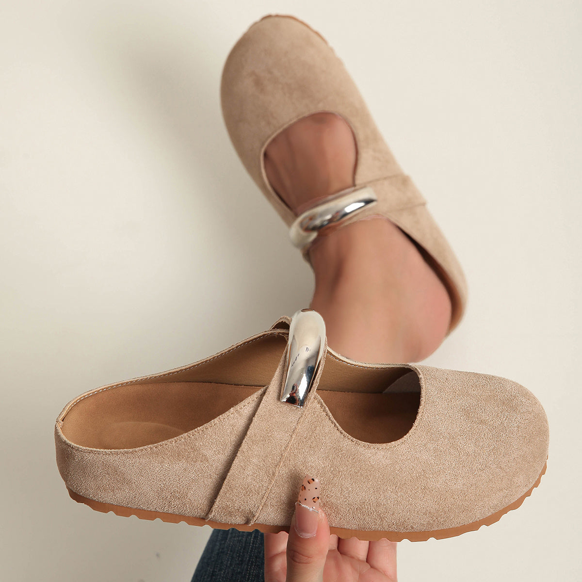 Women's Slip-On Loafers with Metal Buckle Fabric Upper EVA Sole