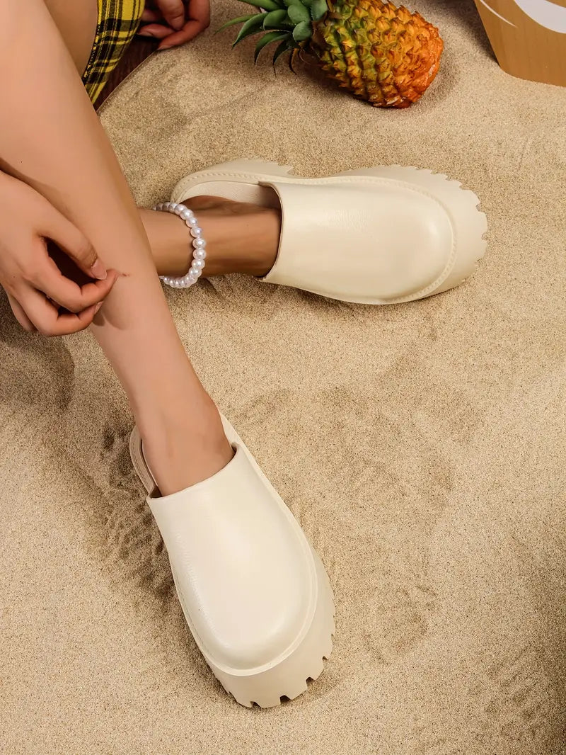Women's Solid Color Cushioned Slip-On Platform Sandals Summer Slides