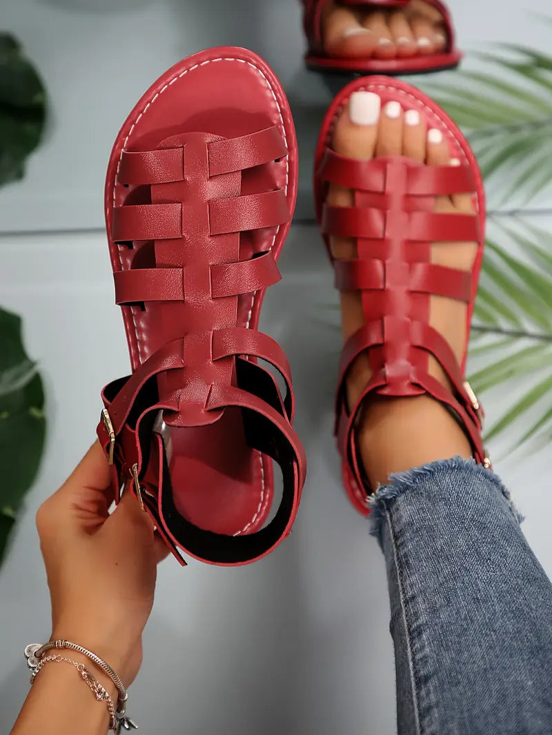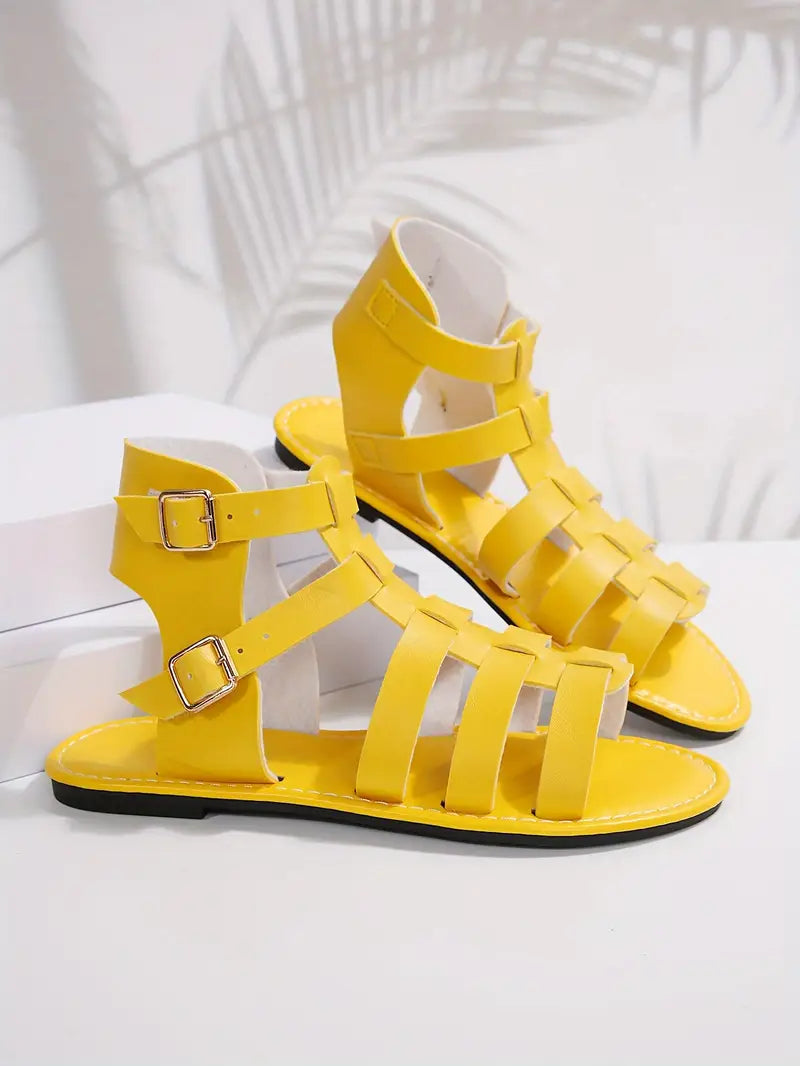 Women's Solid Color Flat Sandals Open Toe Summer Shoes Lightweight Buckle Strap