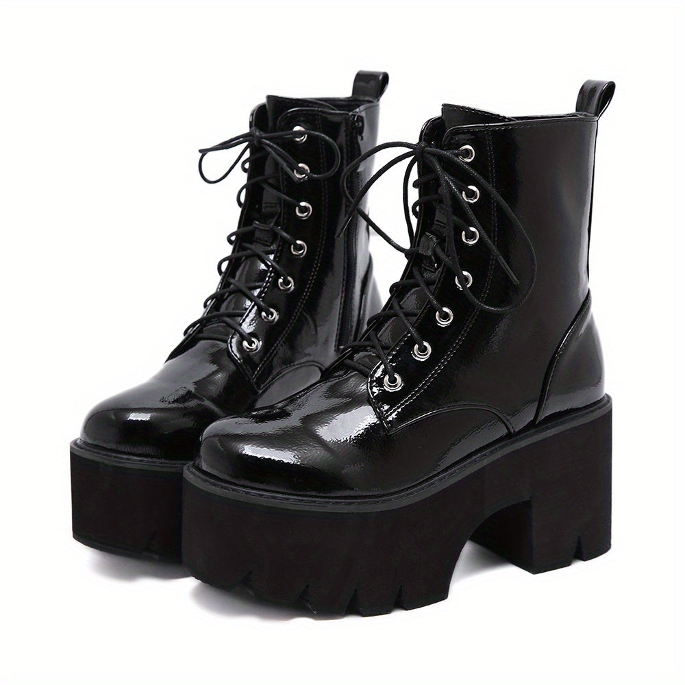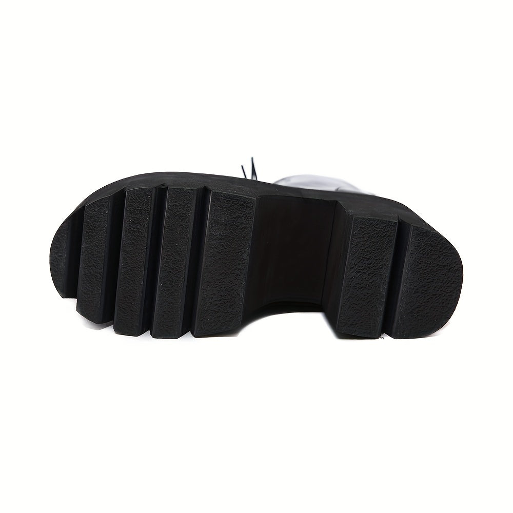 Women's Solid Color Platform Boots with Side Zipper and Round Toe