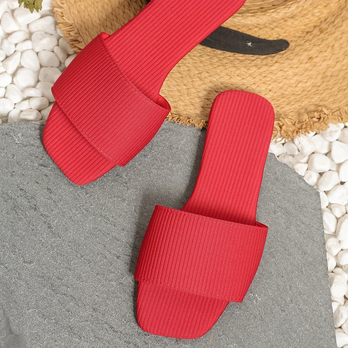 Women's Solid Color Slide Sandals Cushion Flat Summer Shoes Open Toe