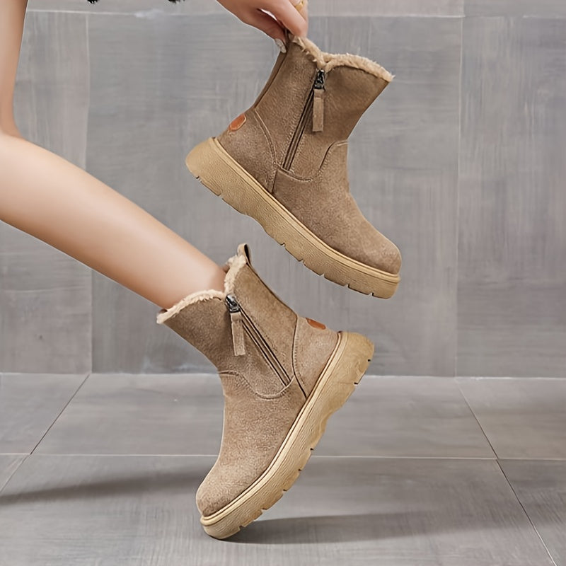Women's Solid Color Winter Boots Side Zipper Warm Plush Non-slip Snow