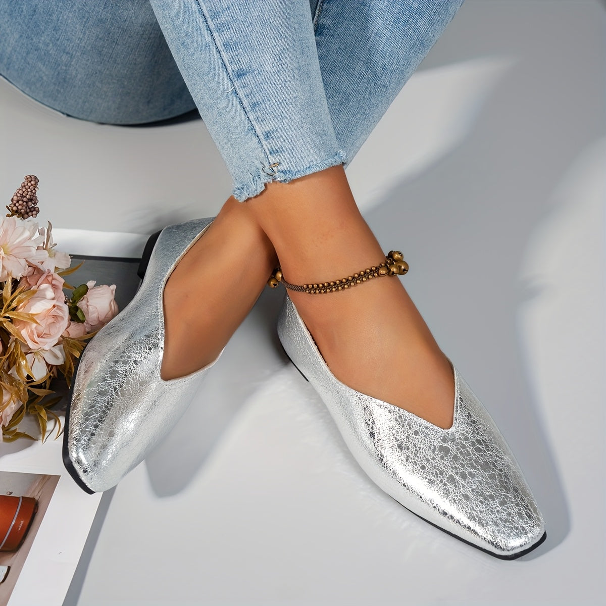 Women's Square Toe Flat Shoes Leather Low Heel Comfortable Work Shoes