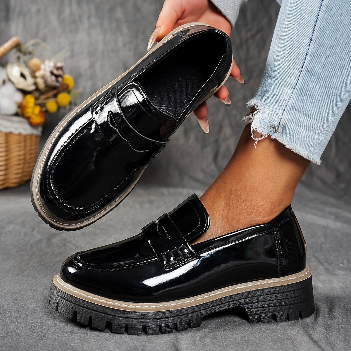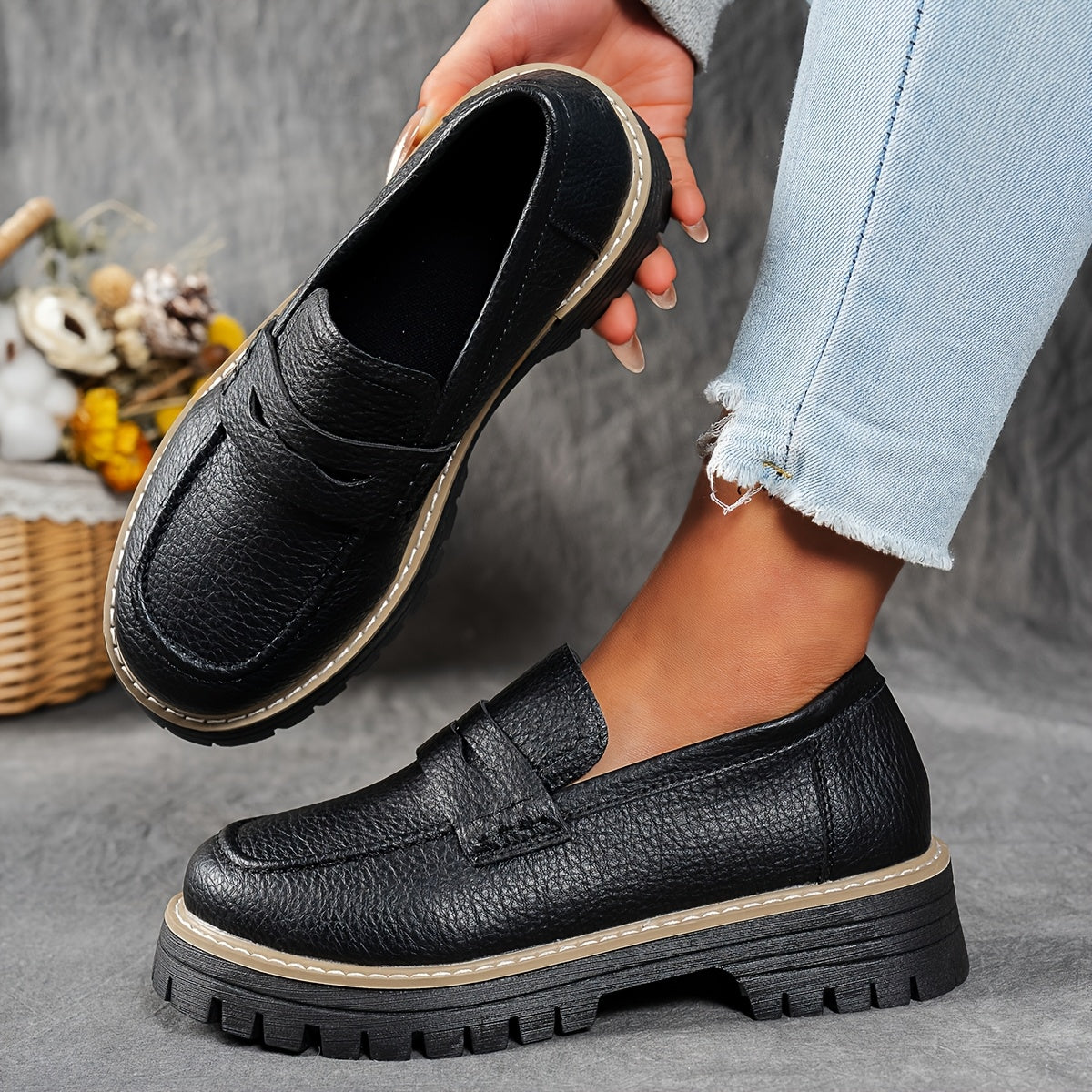 Women's Thick-Soled Loafers Solid Color British Style Casual Shoes