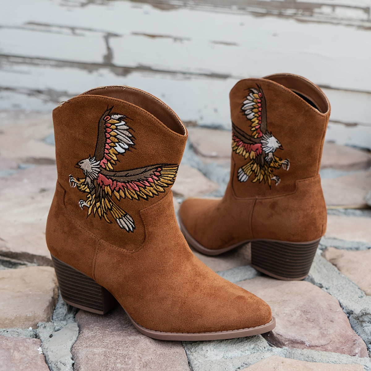 Women's Vintage Leather Riding Boots with Animal Print Eagle Mid-Calf Slip-On