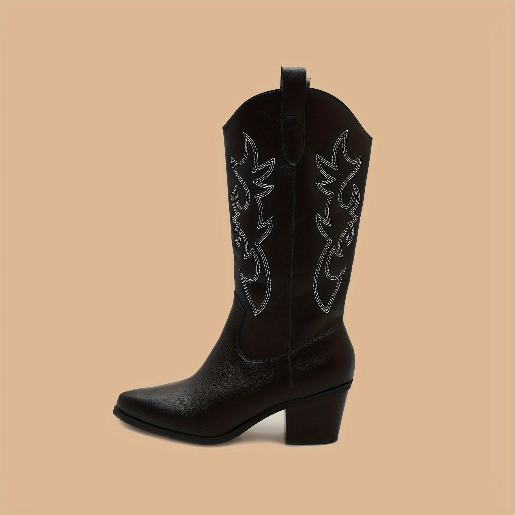 Women's Western Cowboy Boots with V-Cut Embroidery Wide Calf
