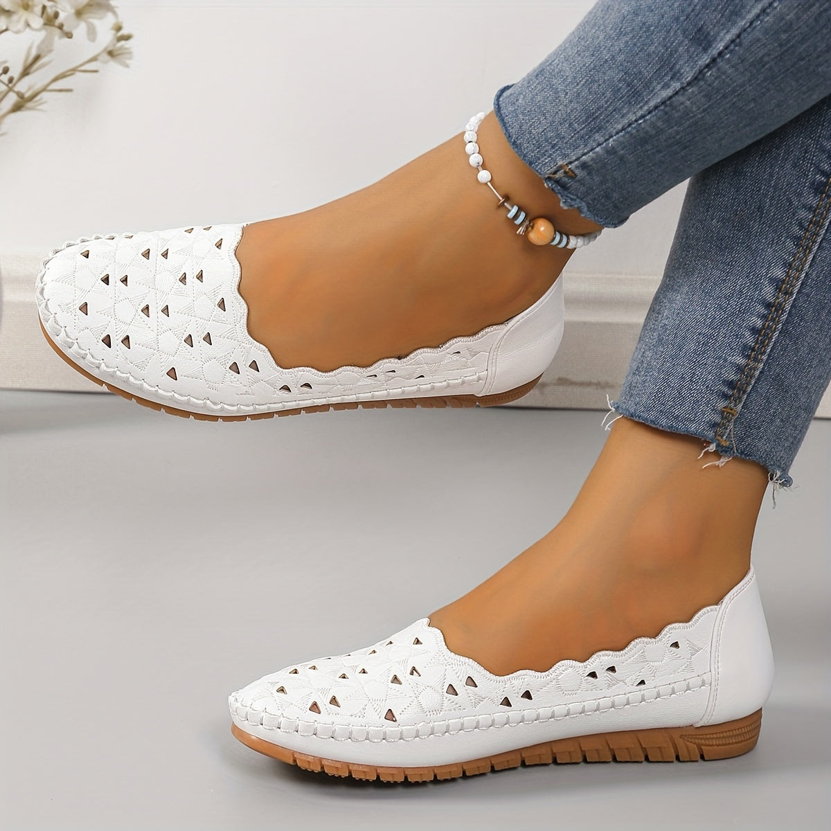 Women's White Faux Cover Slip-On Flat Shoes Casual Formal All-Season