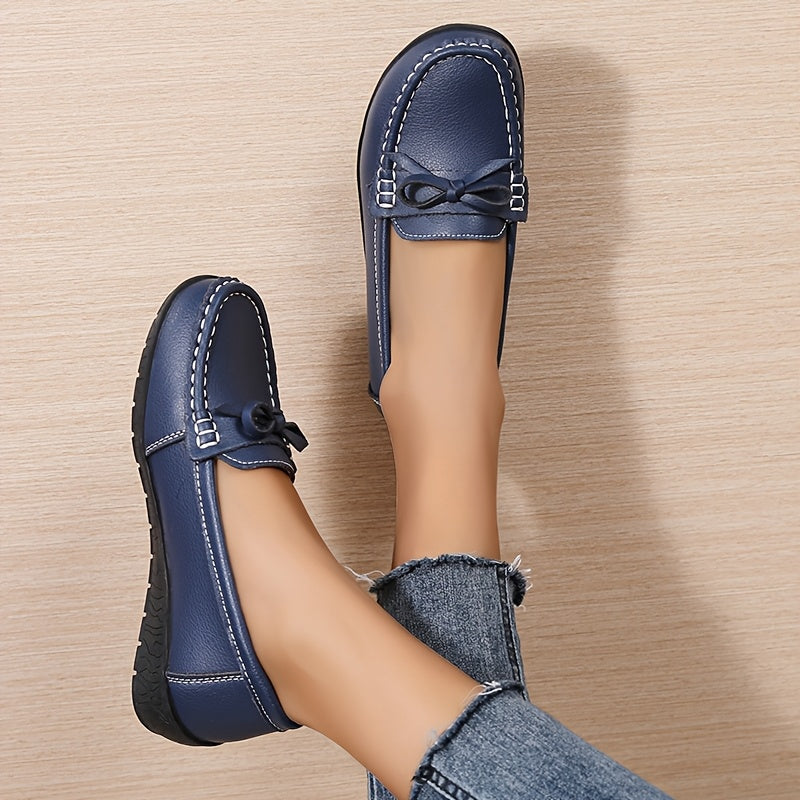 Women's White Faux Leather Loafers with Bow Slip-On Flats for Casual and Nurse Use