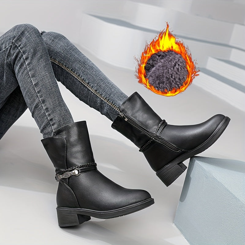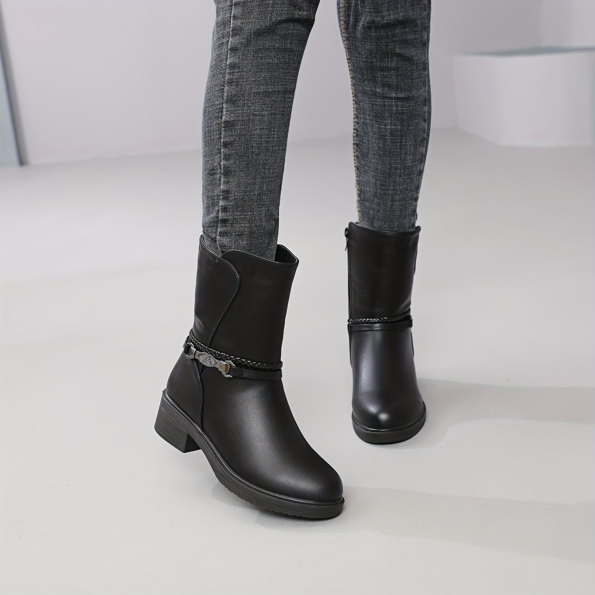 Women's Winter Boots Faux Cover Upper Slip-Resistant Mid-Heel Black