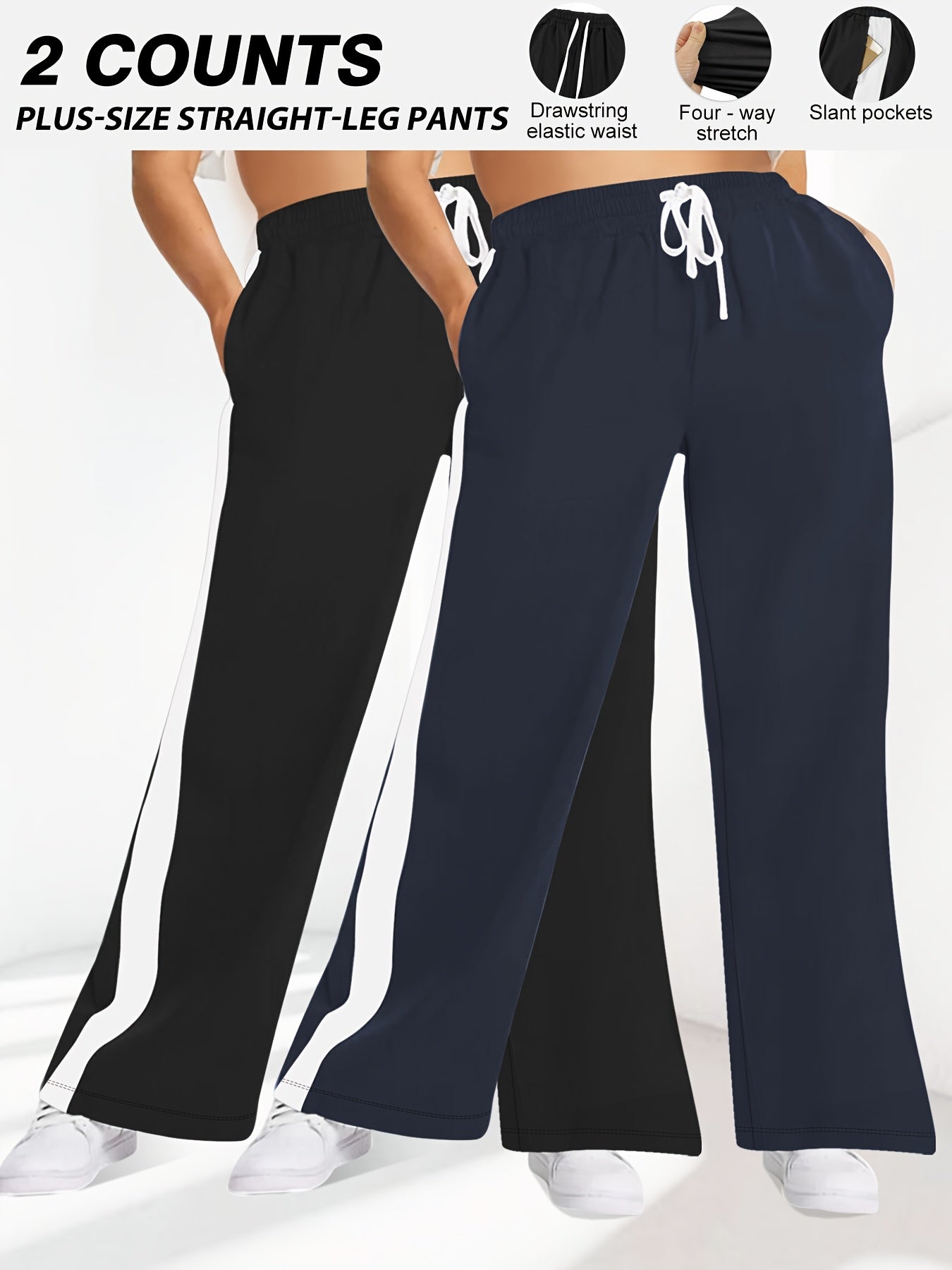 Women Wide Leg Pants Black and White Striped High-Waisted Drawstring