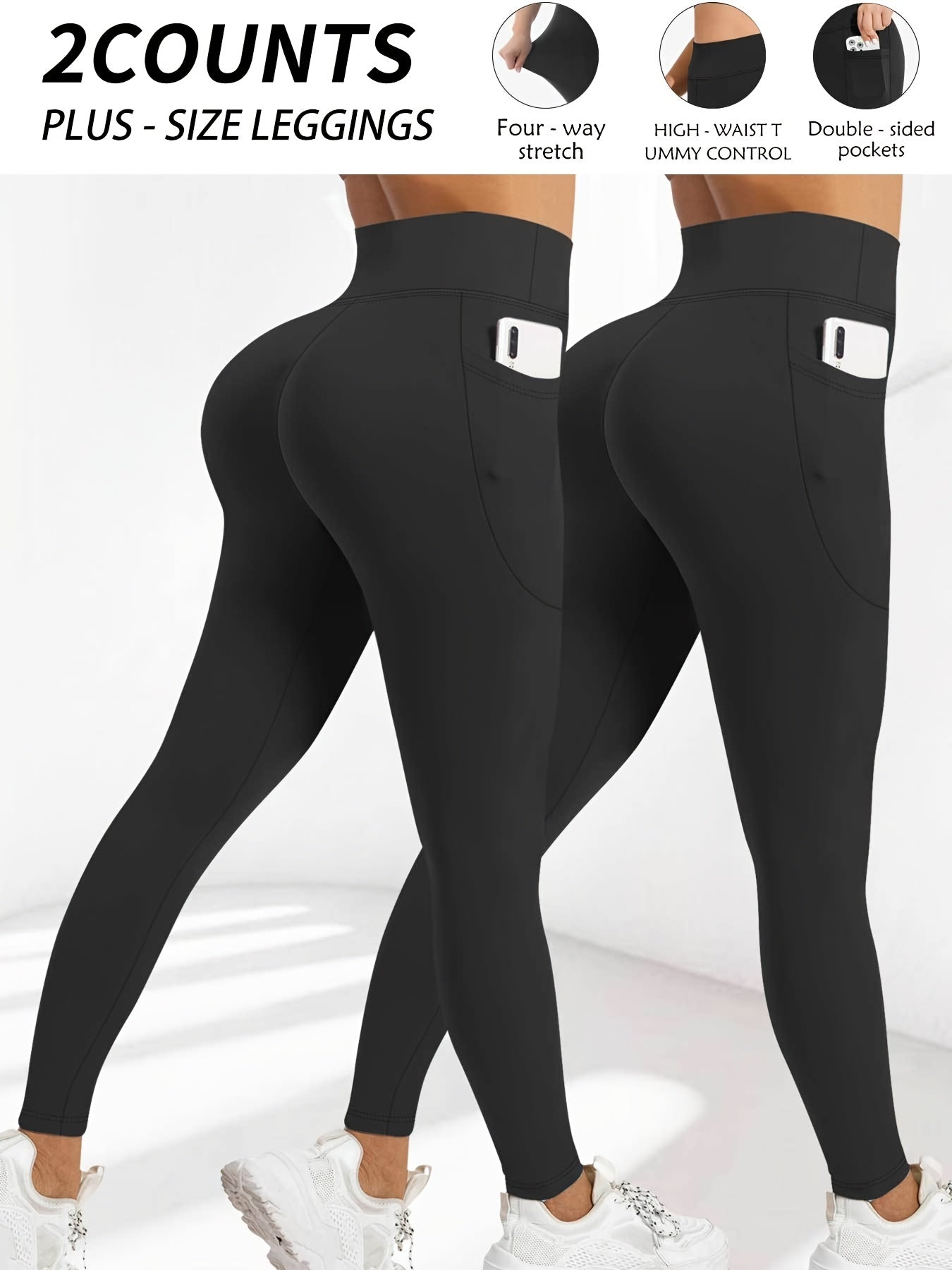Women Yoga Pants 2pcs Large Size High-Waisted Tummy Control with Pockets