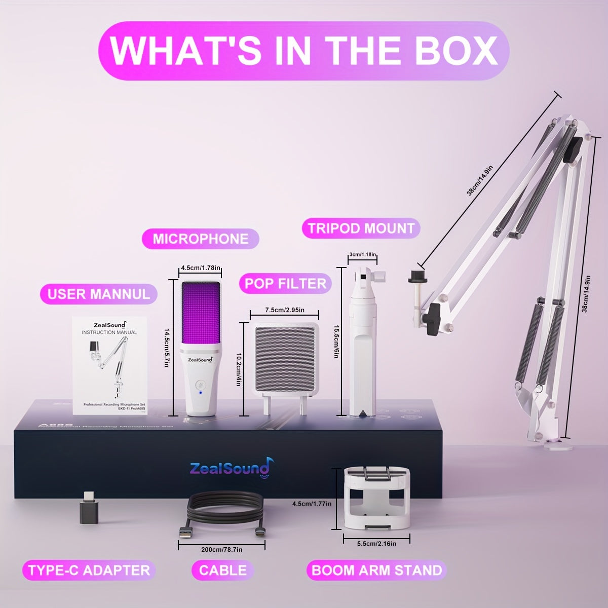 USB Gaming Microphone Kit with Boom Arm RGB Light for Streaming and PC Use