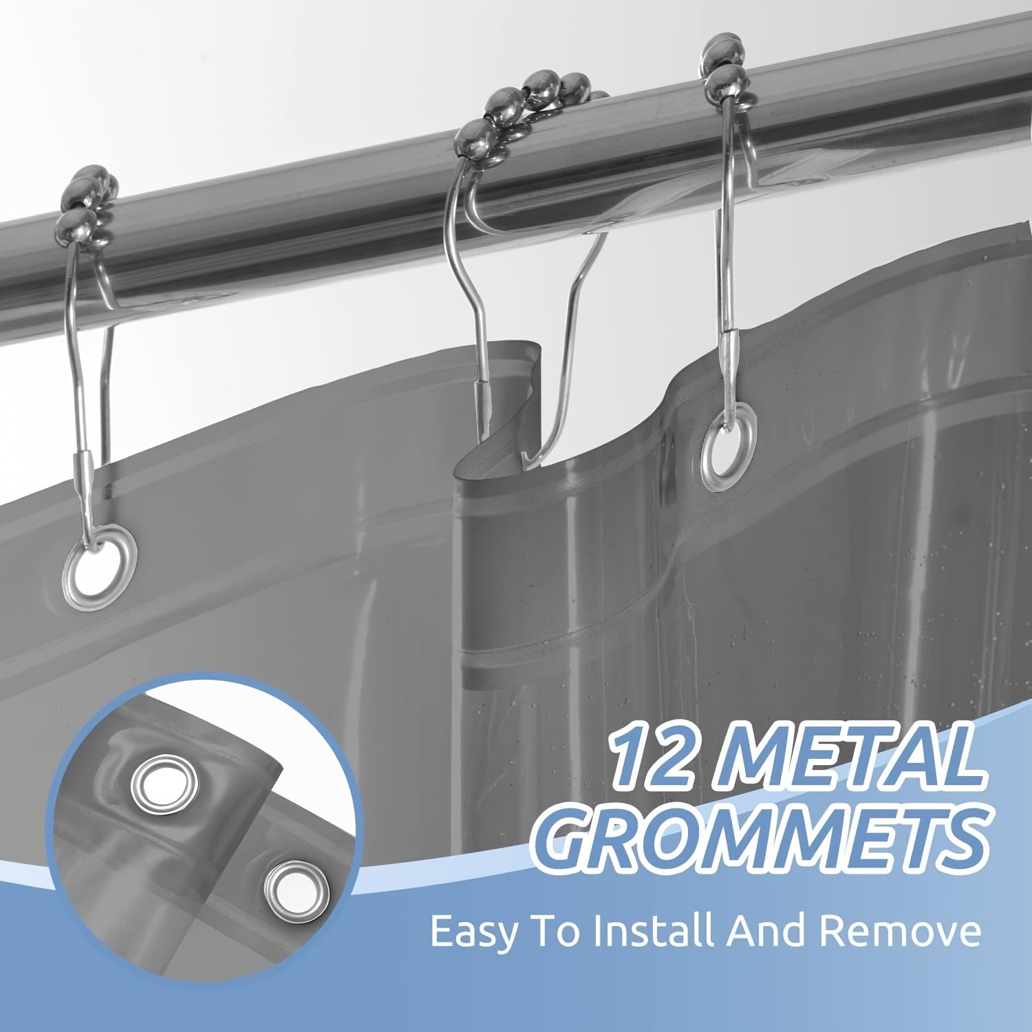 Waterproof PEVA Shower Curtain Liner with 12 Hooks 180x180cm for Bathtub