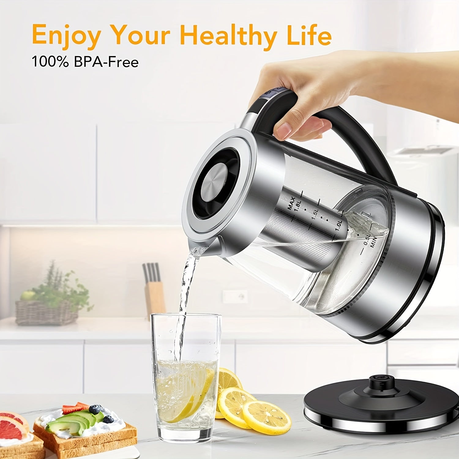 Electric Glass Kettle 1.8L with 12 Temperature Controls and Insulation