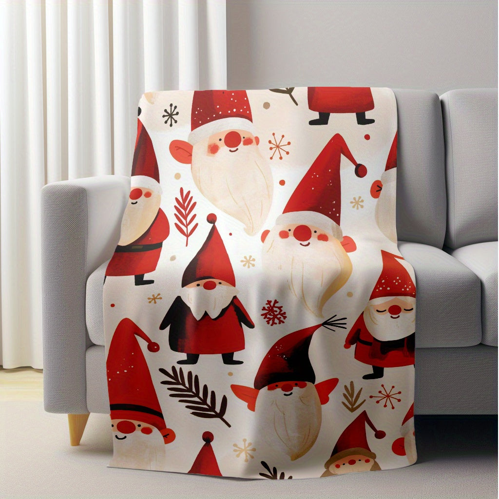 Christmas Santa Gnome Patterned Soft Flannel Throw Blanket for Sofa Home Travel