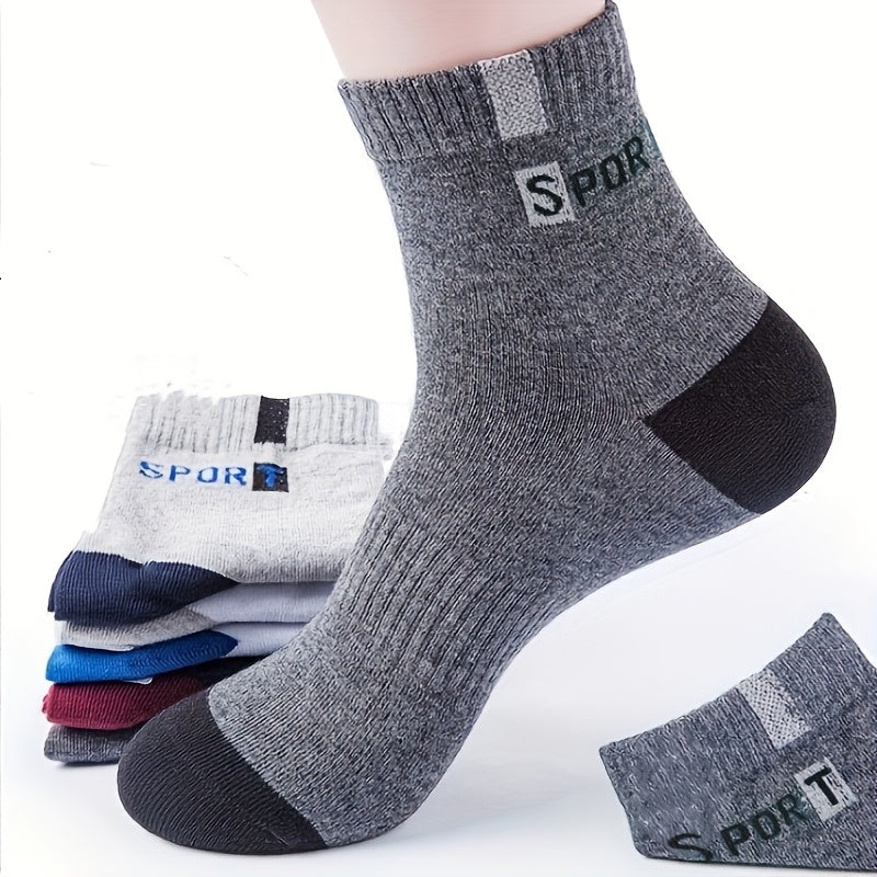Men's Breathable Sports Socks 10 Pairs Elastic Mesh Running Socks with Lettering
