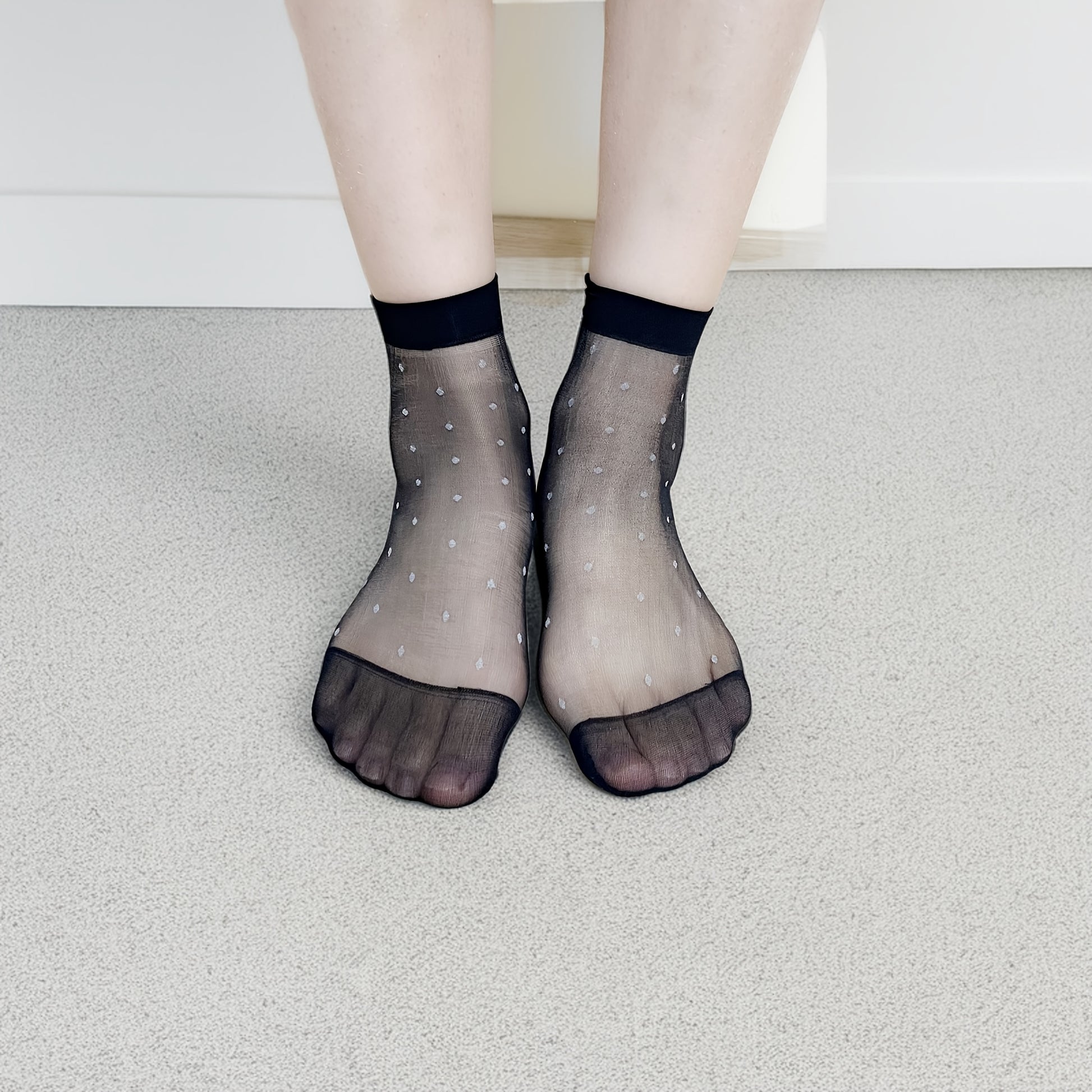Women’s Mesh Ankle Socks 10 Pairs Polka Dot Breathable Nylon Spandex
