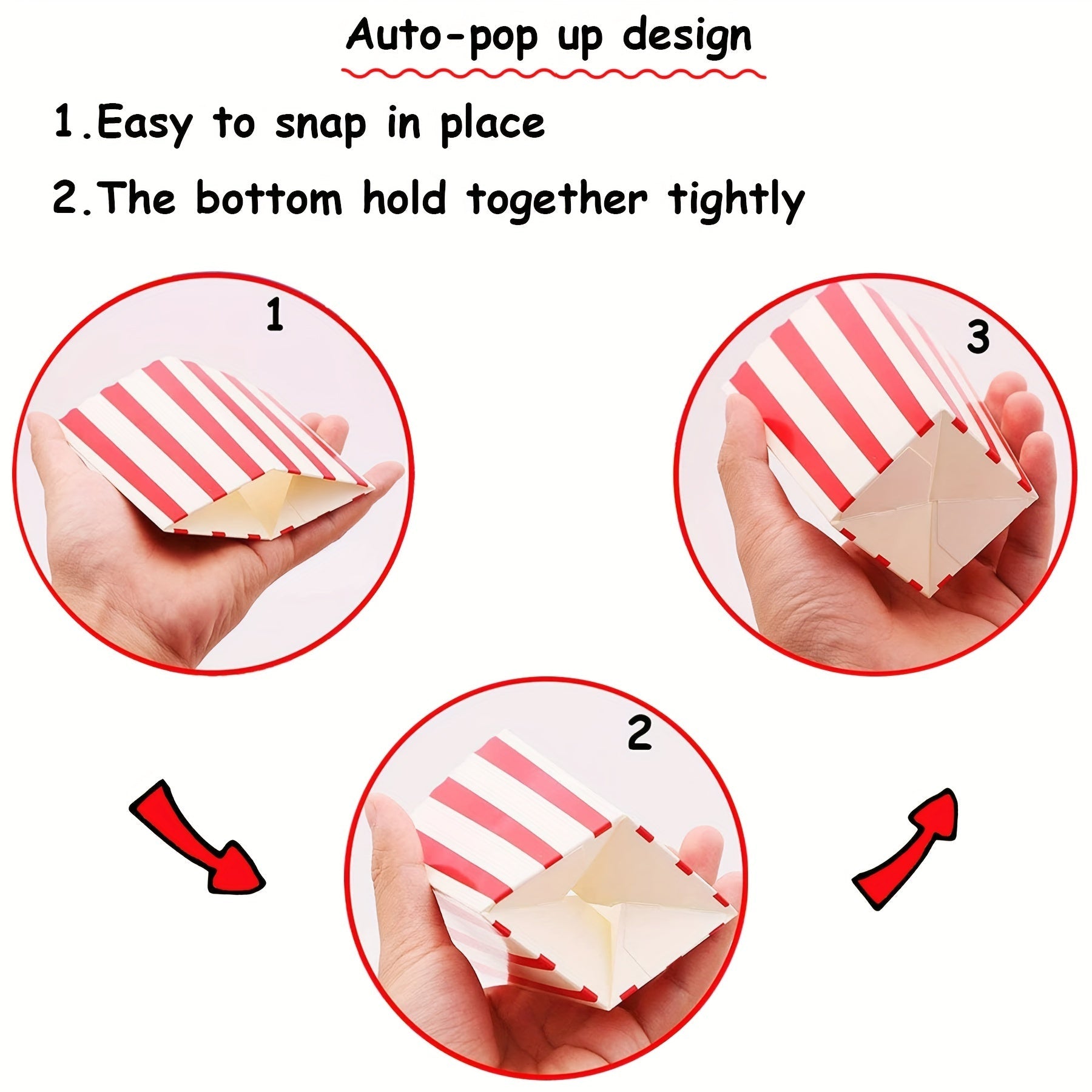 100 Disposable Red and White Popcorn Boxes 2.27oz for Movie Theater Carnival