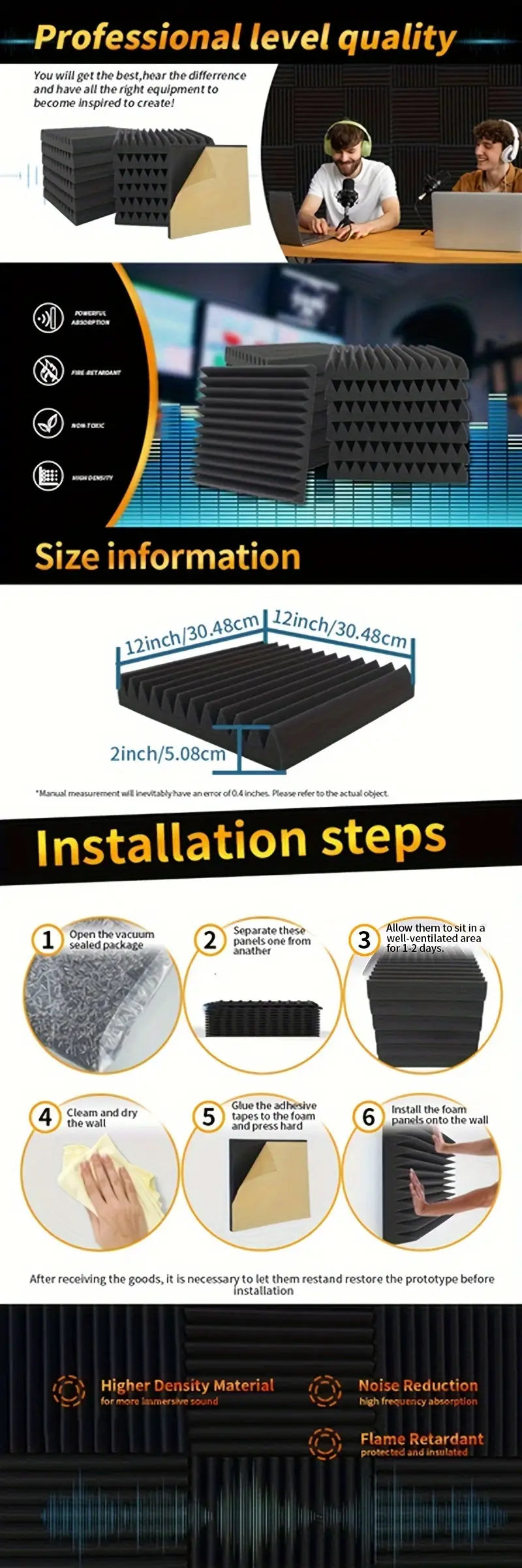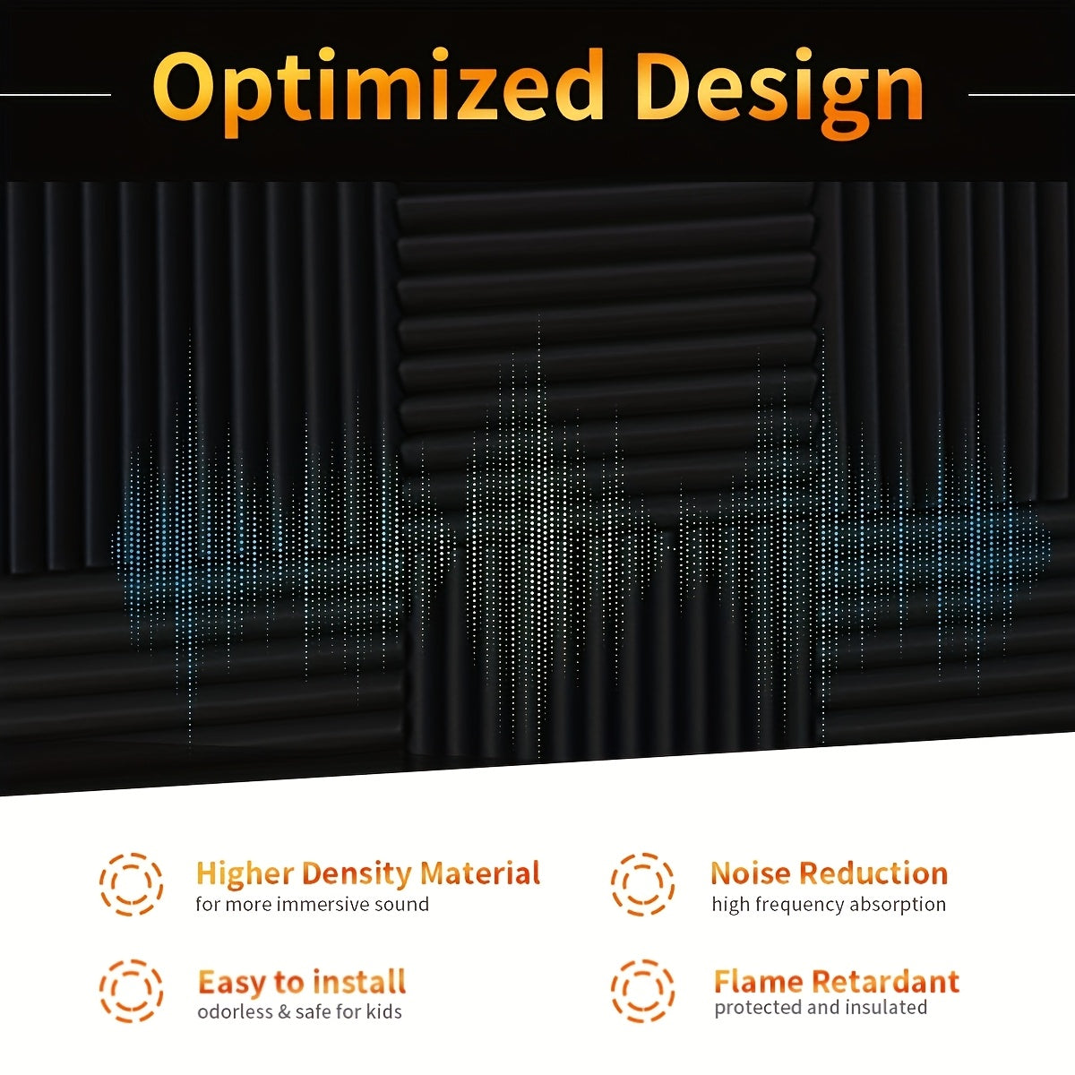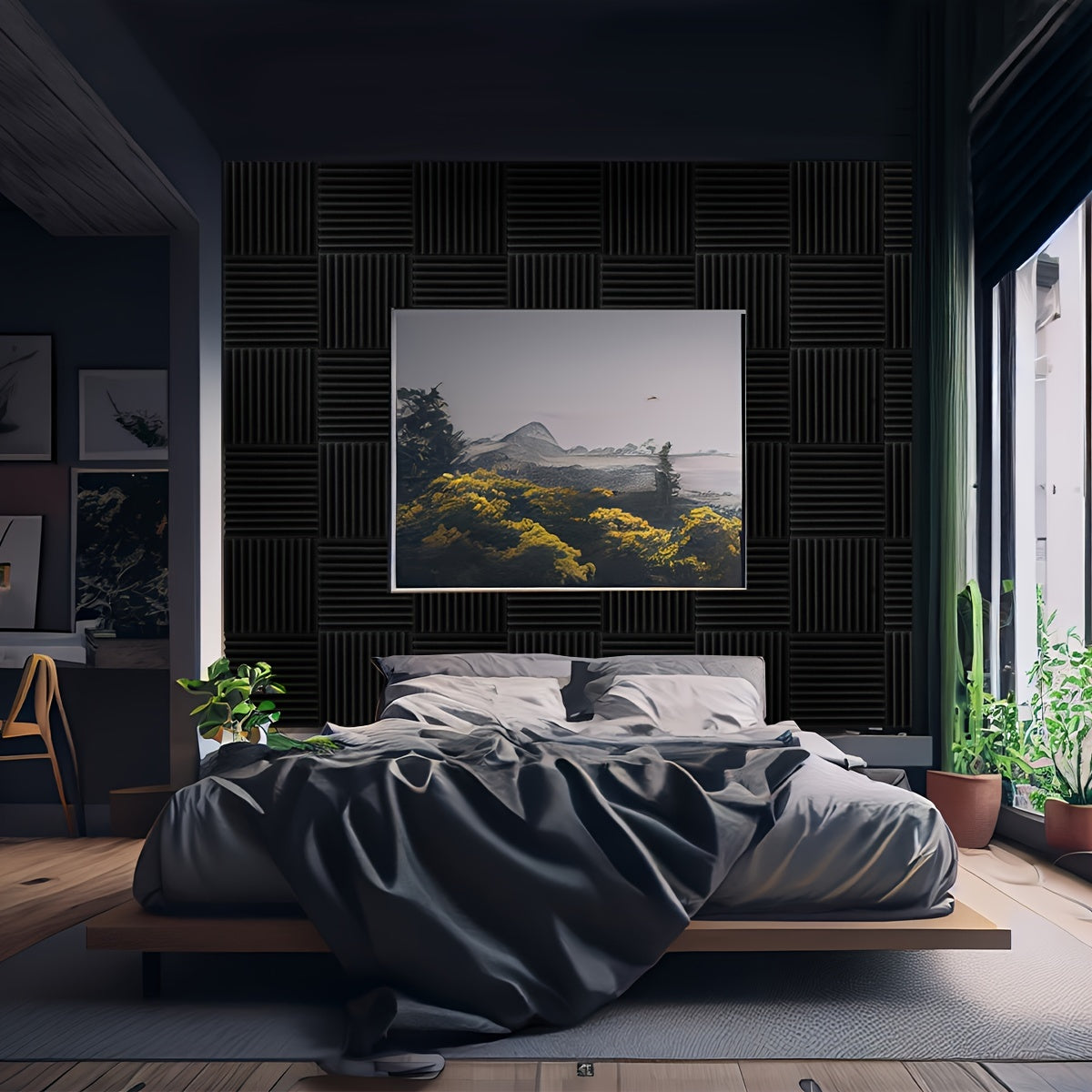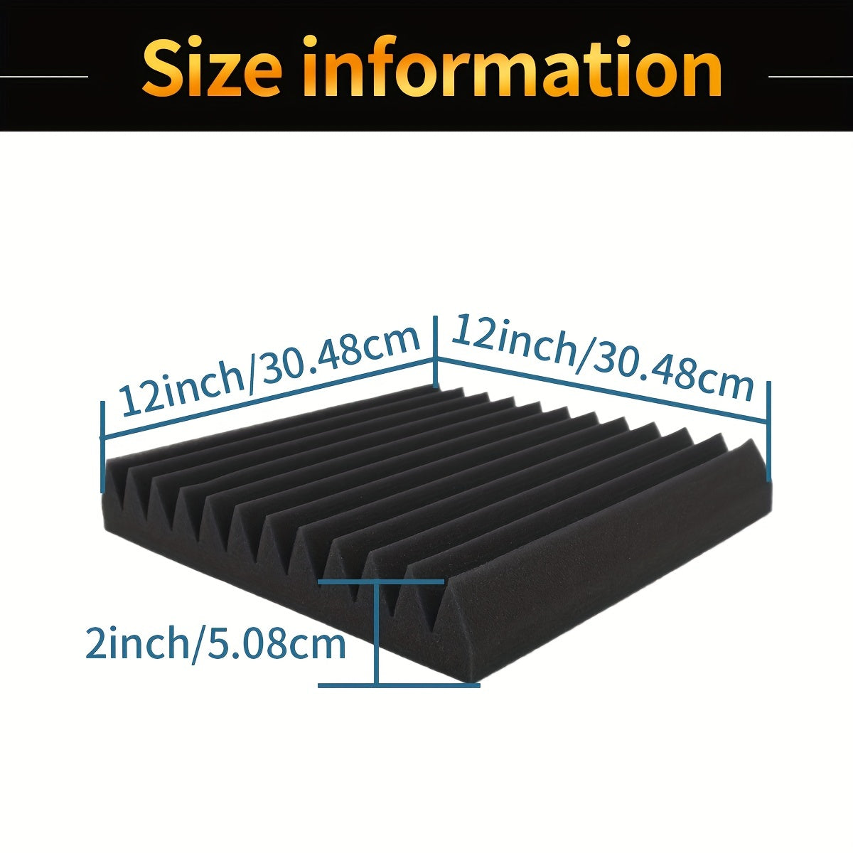 12-Pack Acoustic Foam Panels Self-Adhesive Soundproofing Tiles for Noise Reduction Black Grey 30.48cm x 30.48cm